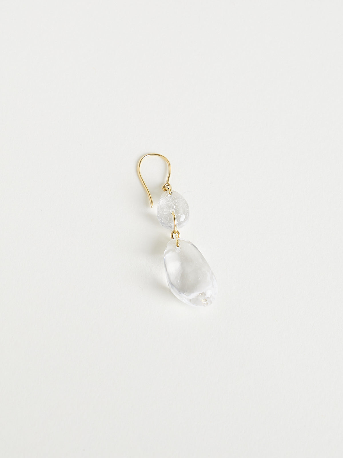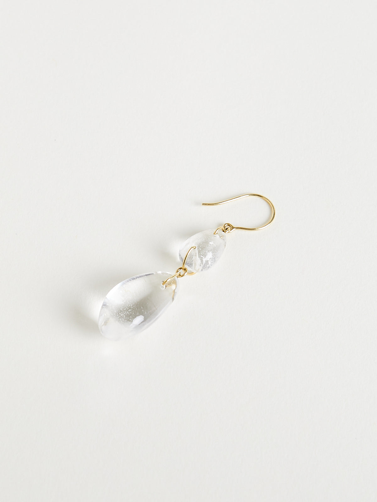 Handcrafted earrings in 18k yellow gold with crystal double drops. Features an ear wire backing.