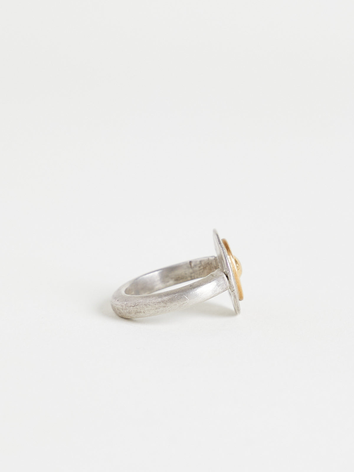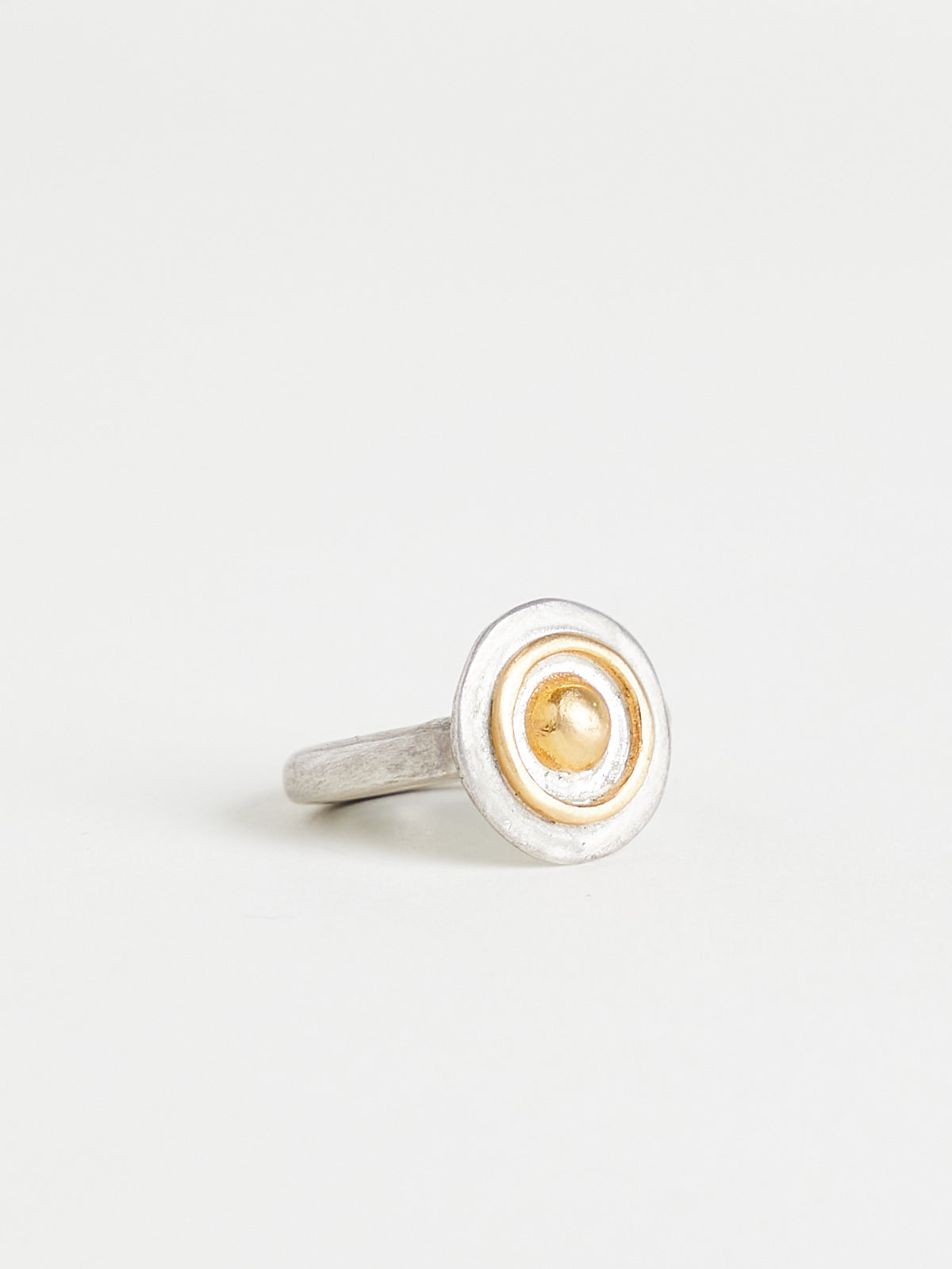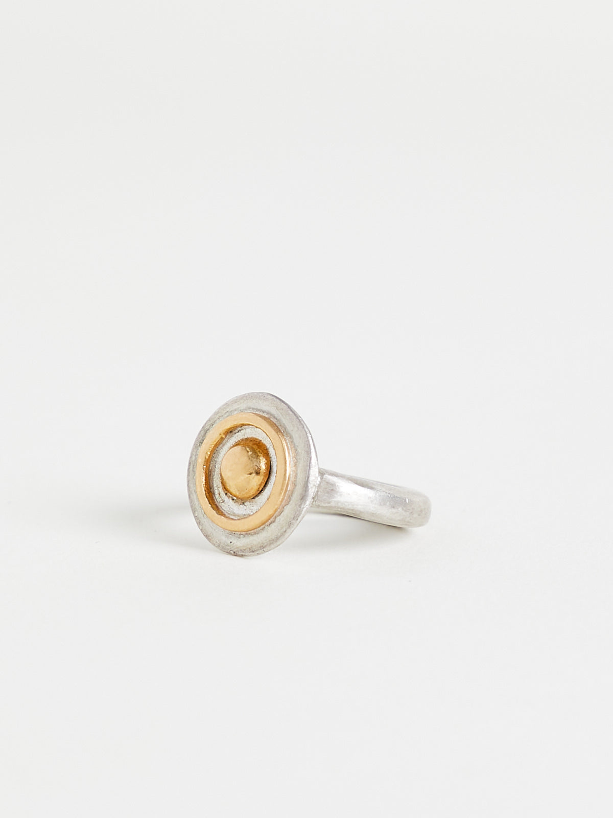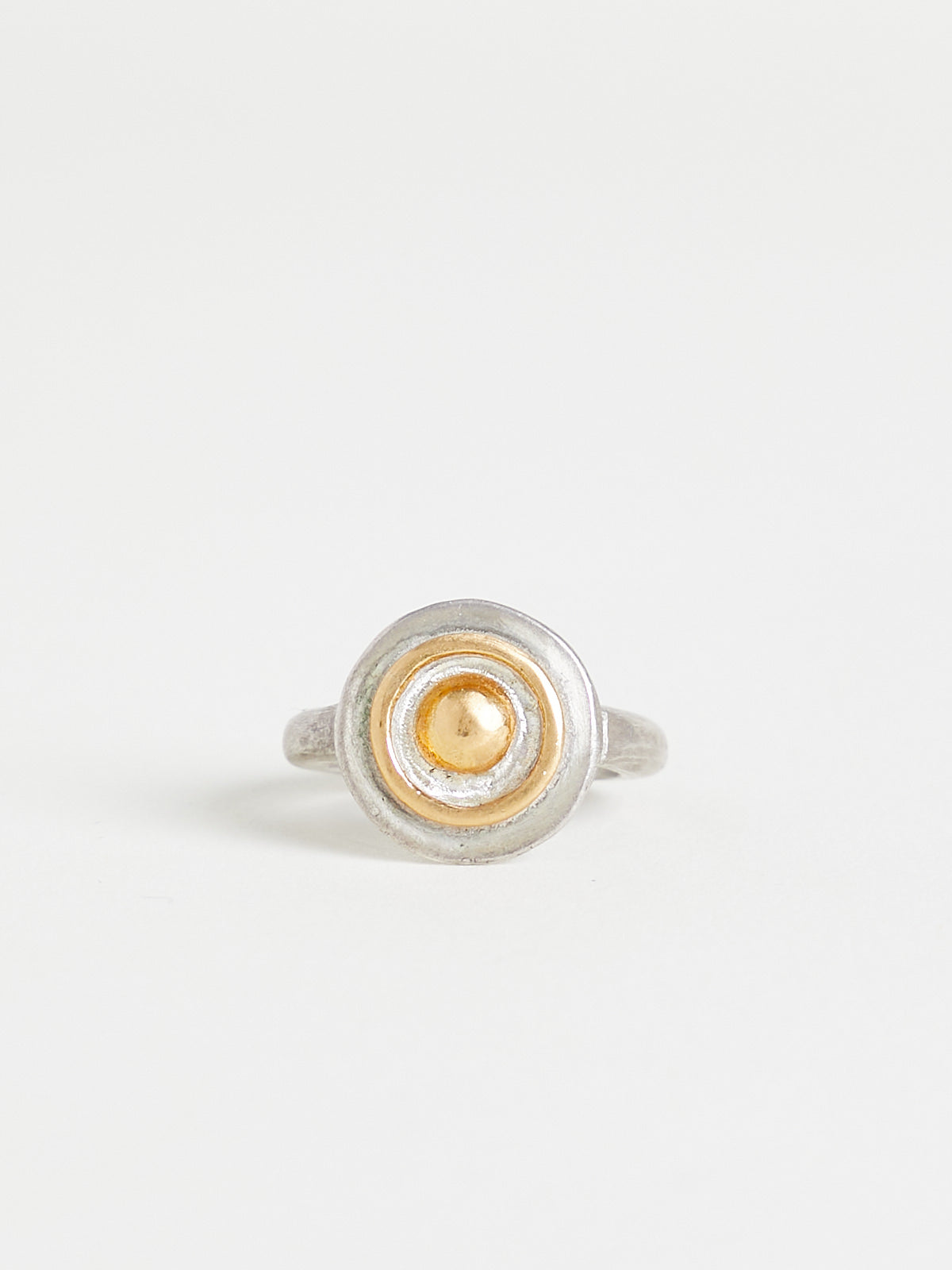 Handcrafted watchful eye ring in sterling silver and 18k yellow gold.