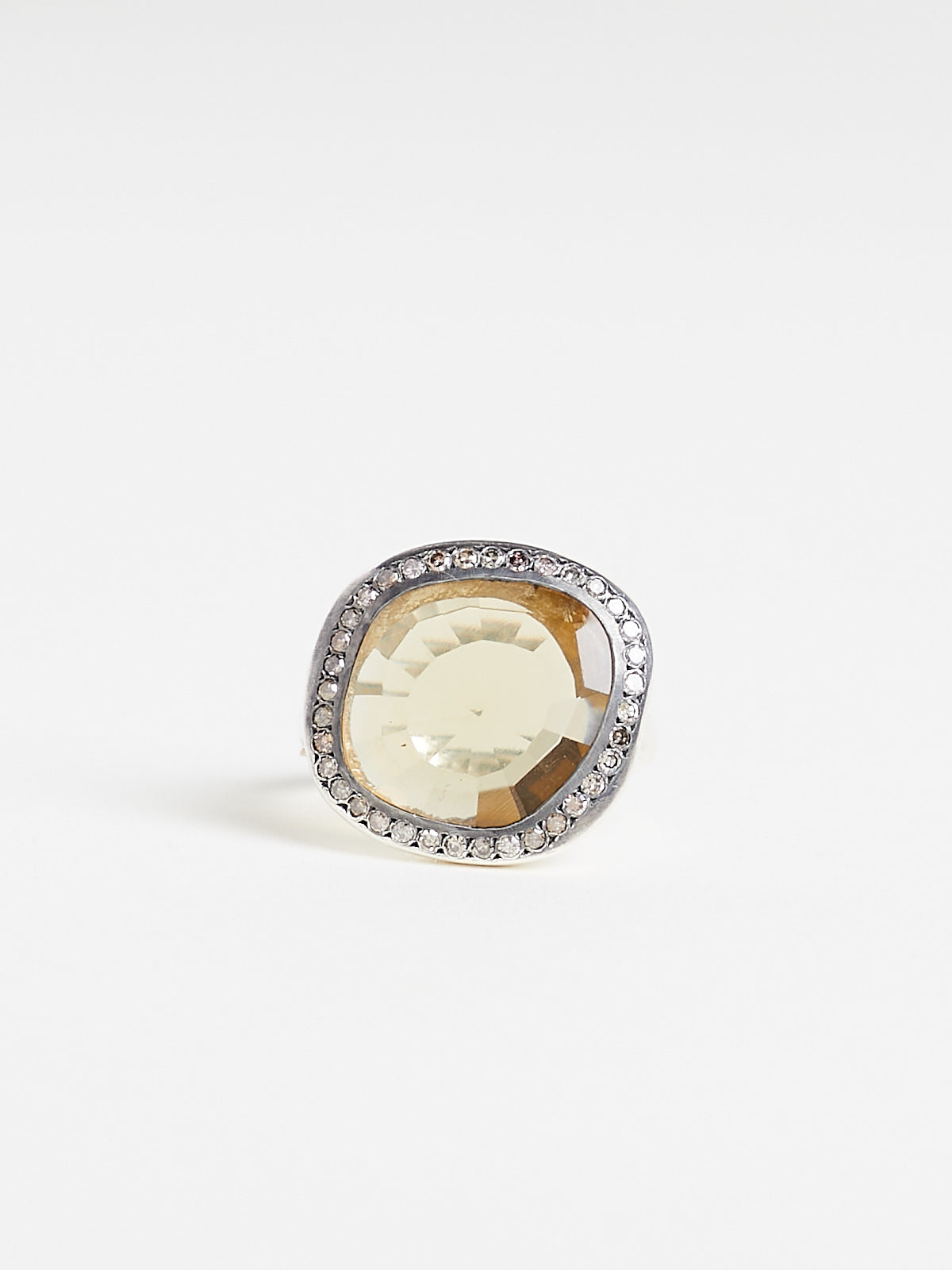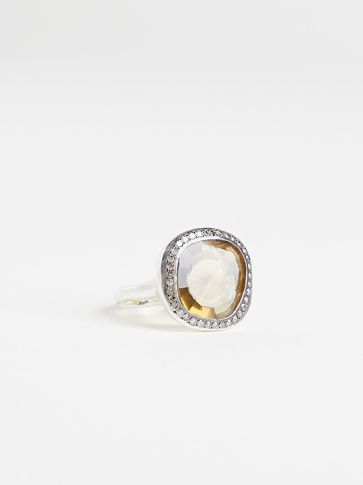 Junya Ring in Sterling Silver with Cognac Diamonds & Honey Quartz