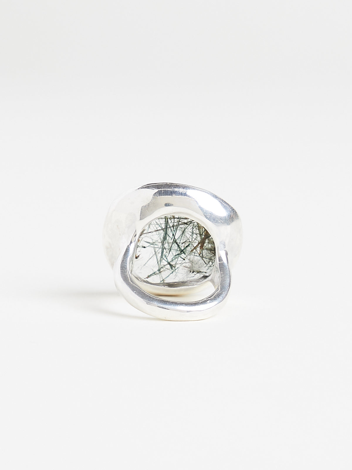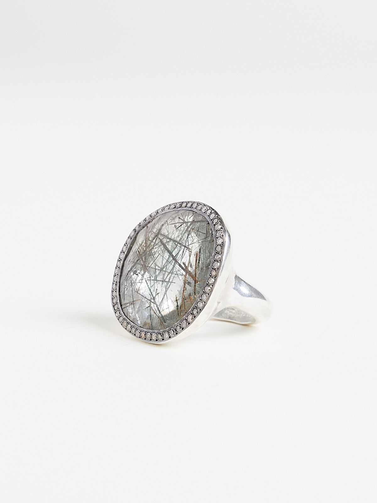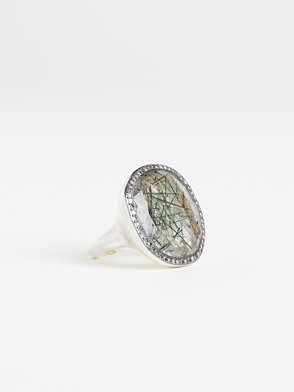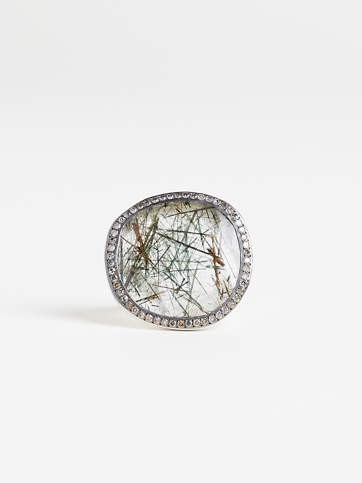 Roberta Ring in Sterling Silver with Cognac Diamonds & Green Rutilated Quartz