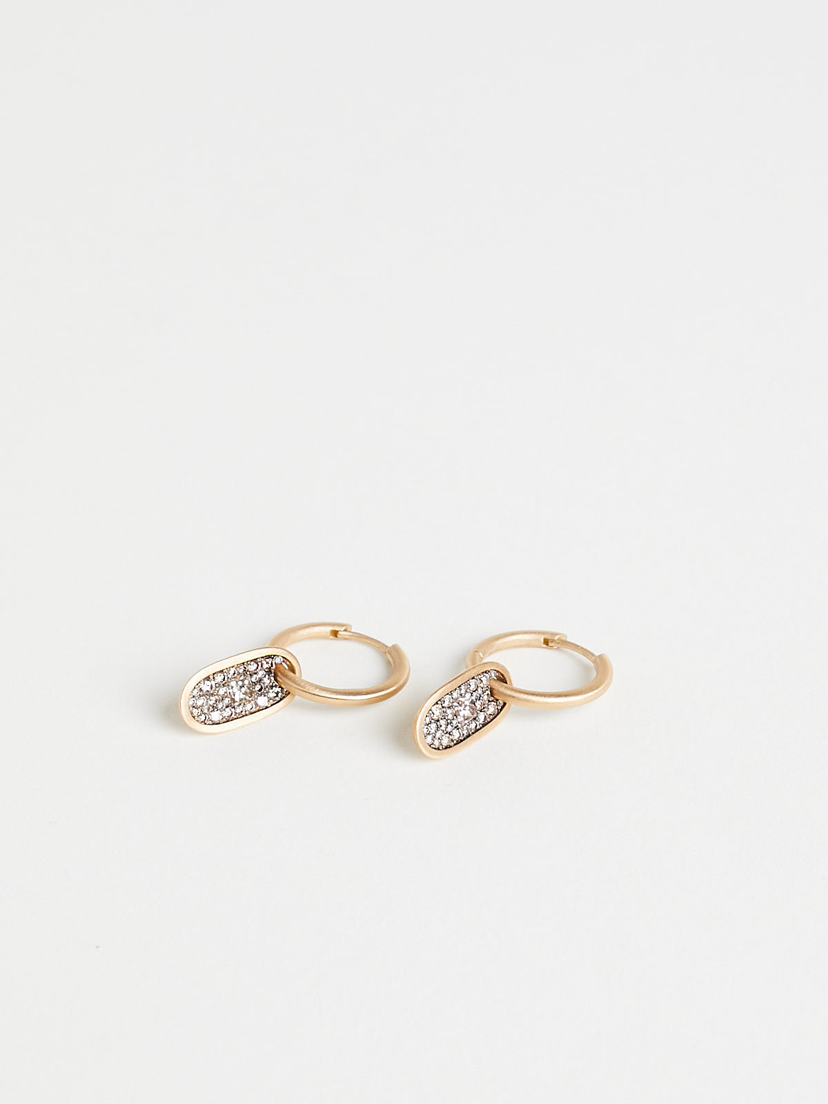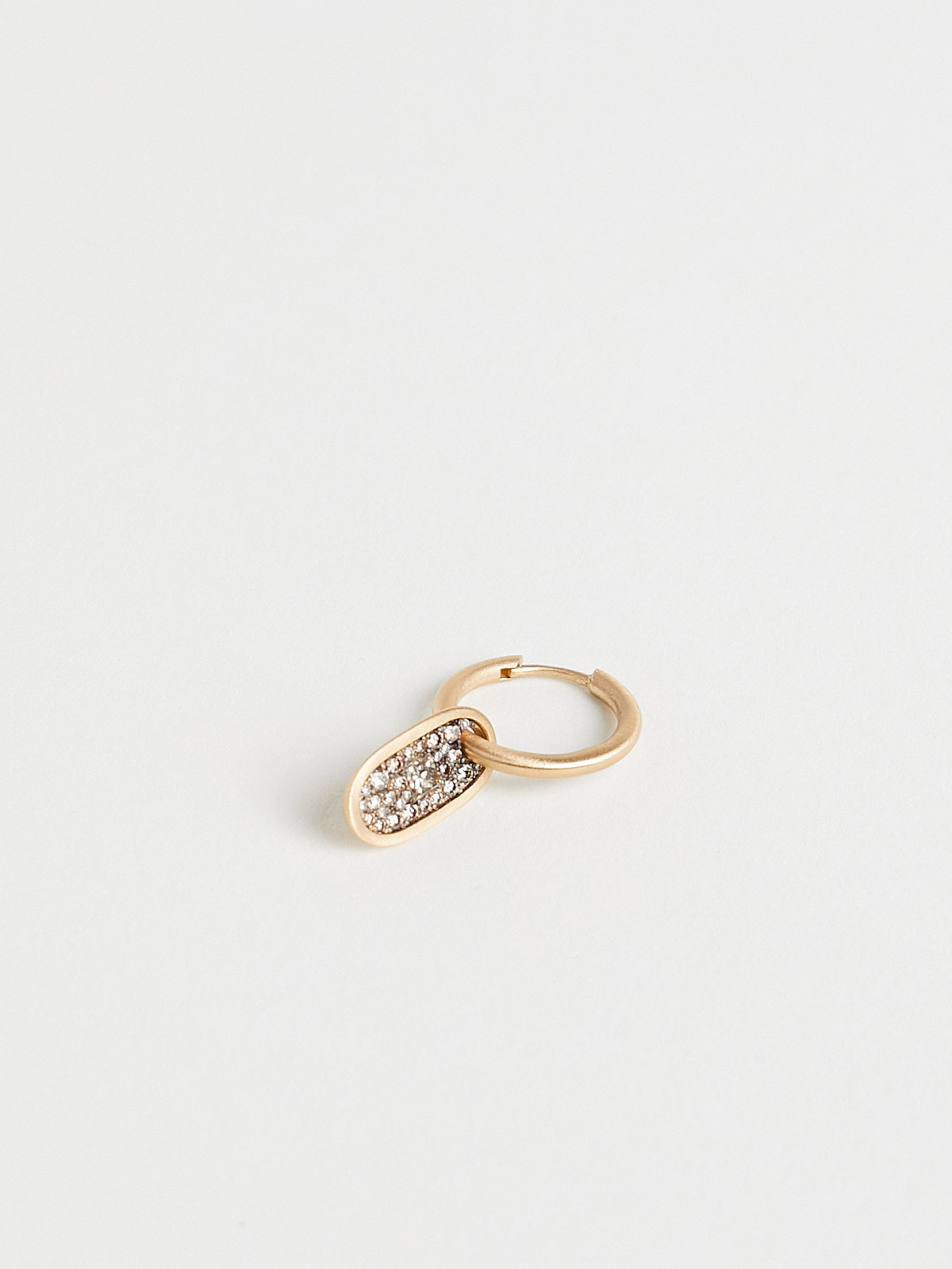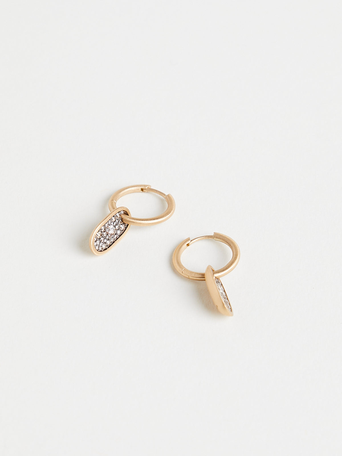 Hoop earrings in matte 18k single main origin yellow gold with pendant encrusted with approximately 0.5cts of VS-SI brown natural diamonds. Features a hinged backing.