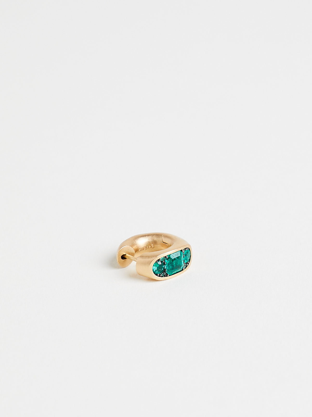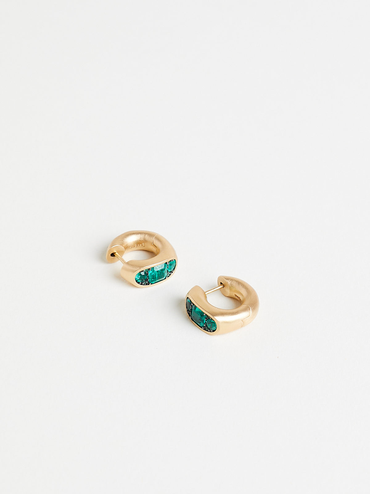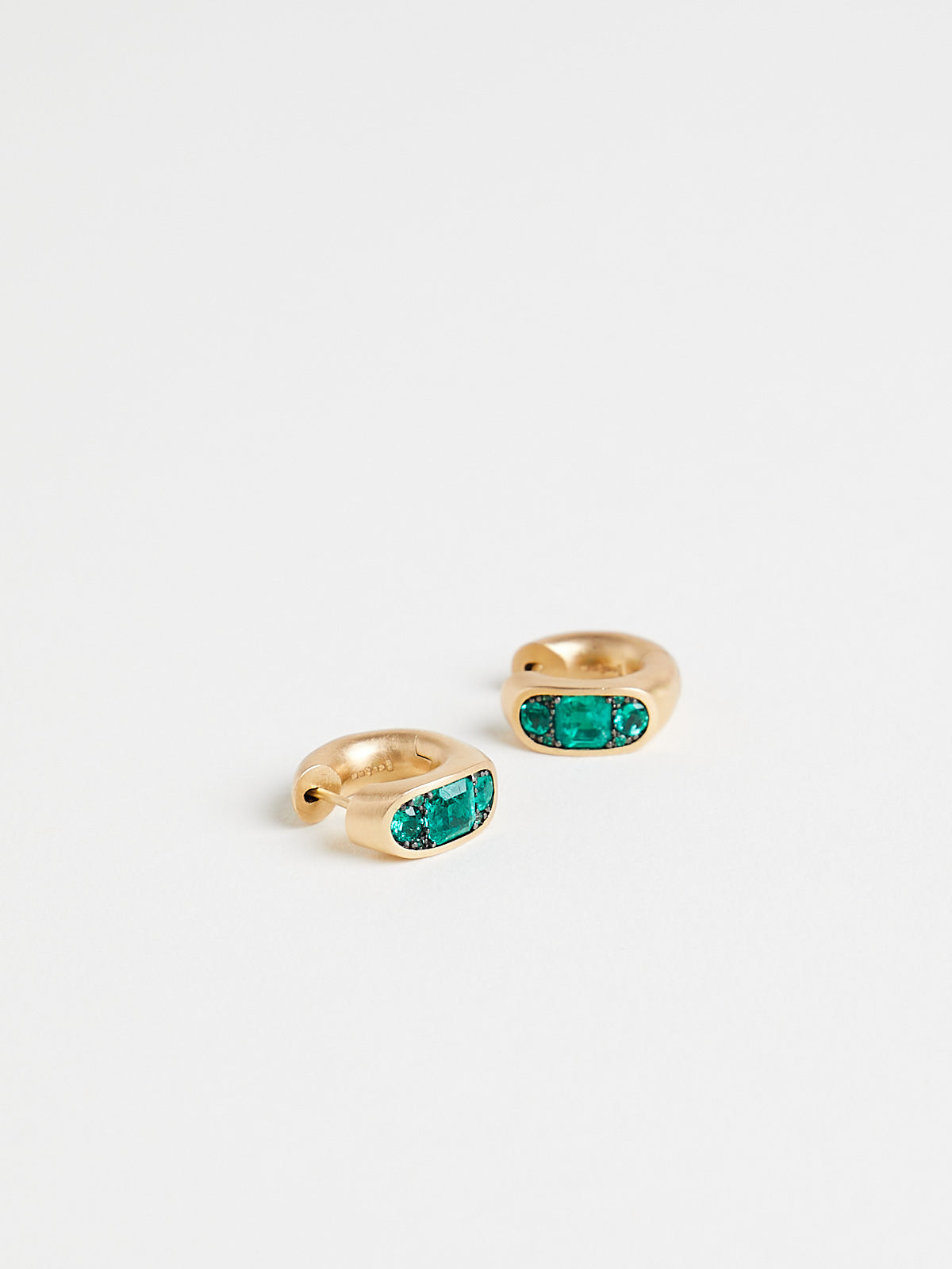 Medium Keystone Huggies with Emeralds on 18k Yellow Gold