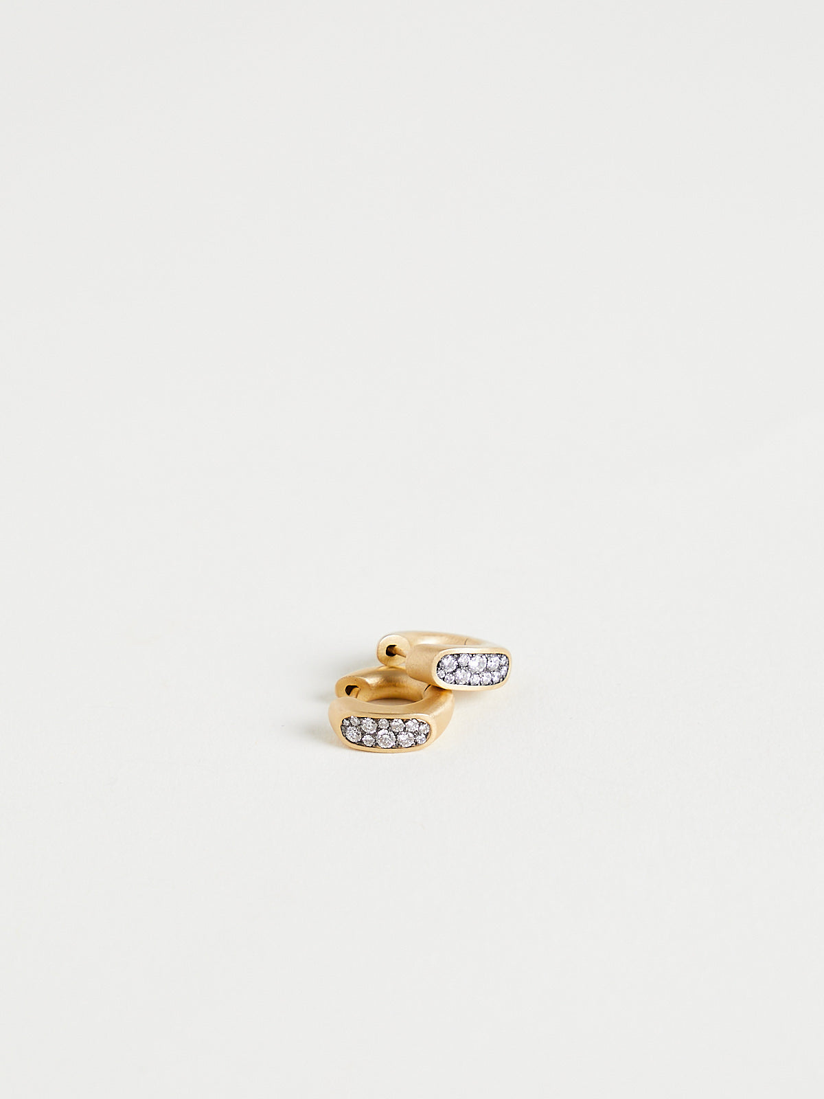 Small Arc Huggies with White Diamonds on 18k Yellow Gold