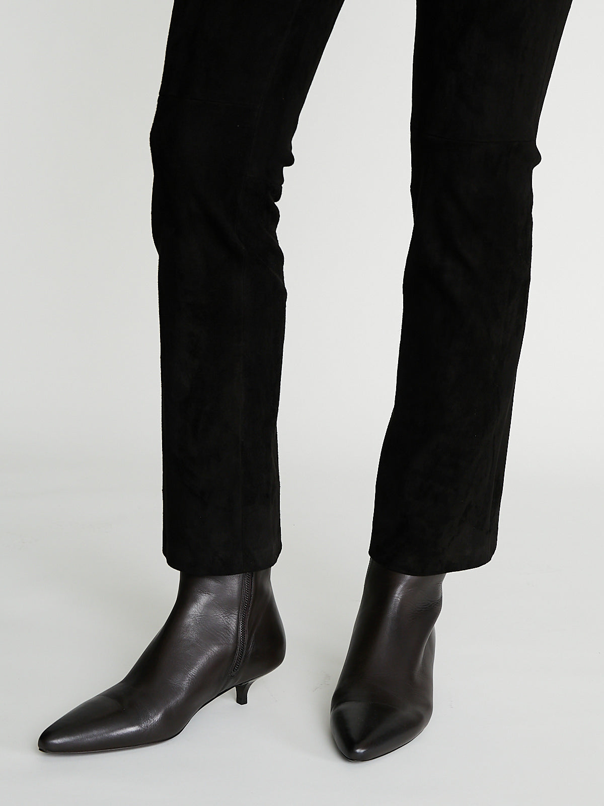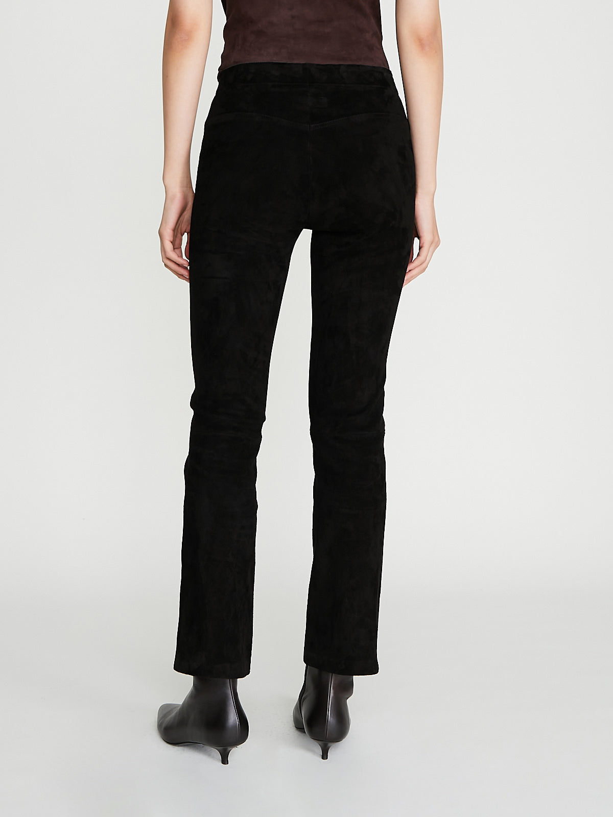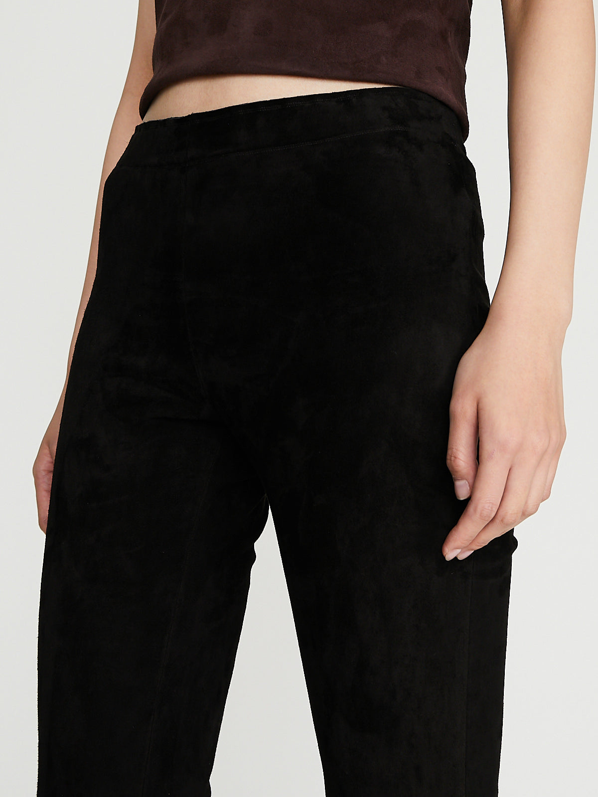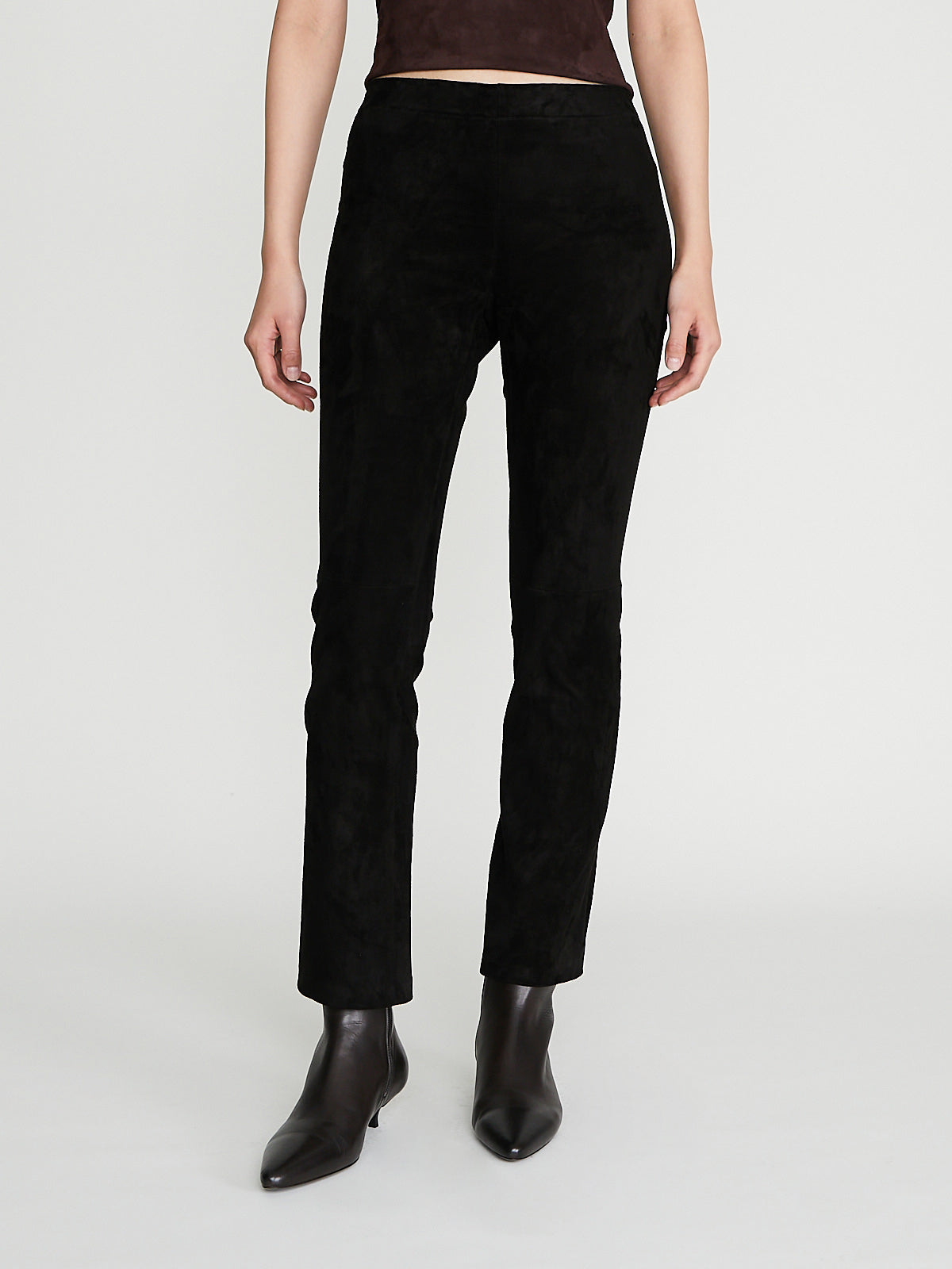 Slim pants in black stretchy suede lambskin. High waist with an elasticated waistband. Cropped legs. Fully lined.