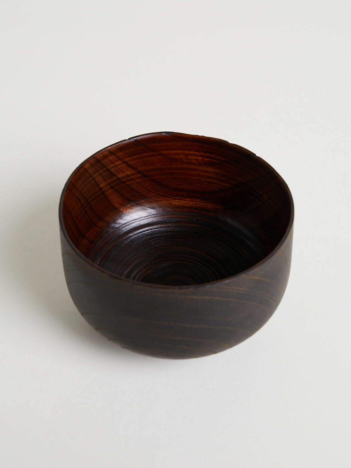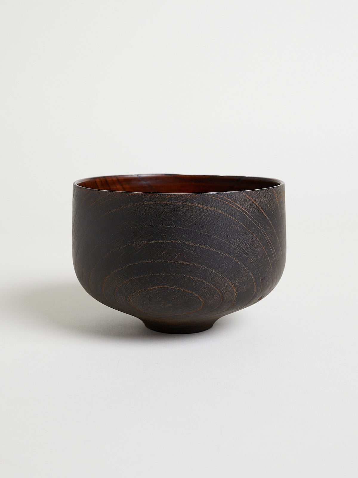 Hand-carved small footed bowl made from locally sourced zelkova wood. This piece has been lacquered using a traditional eco-friendly heat curing technique, ottchil, that's been used for thousand of years. This technique applies approximately 30 coats of naturally heated lacquer, derived from the sap of rhus trees, and hardens it.