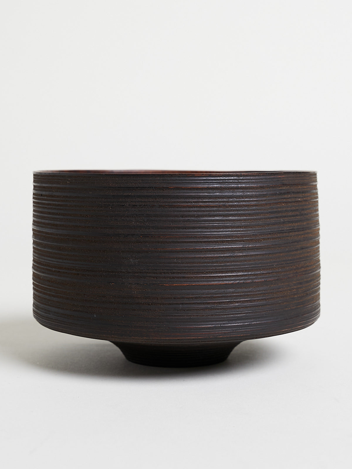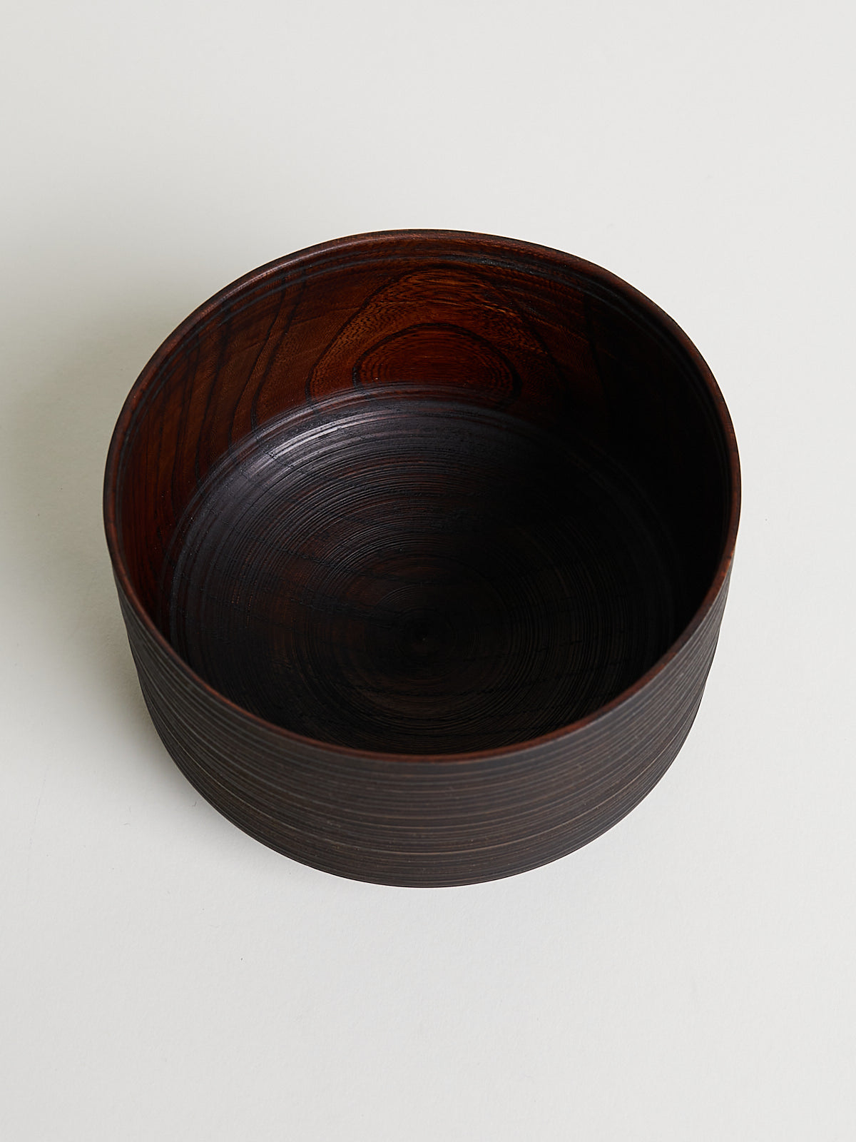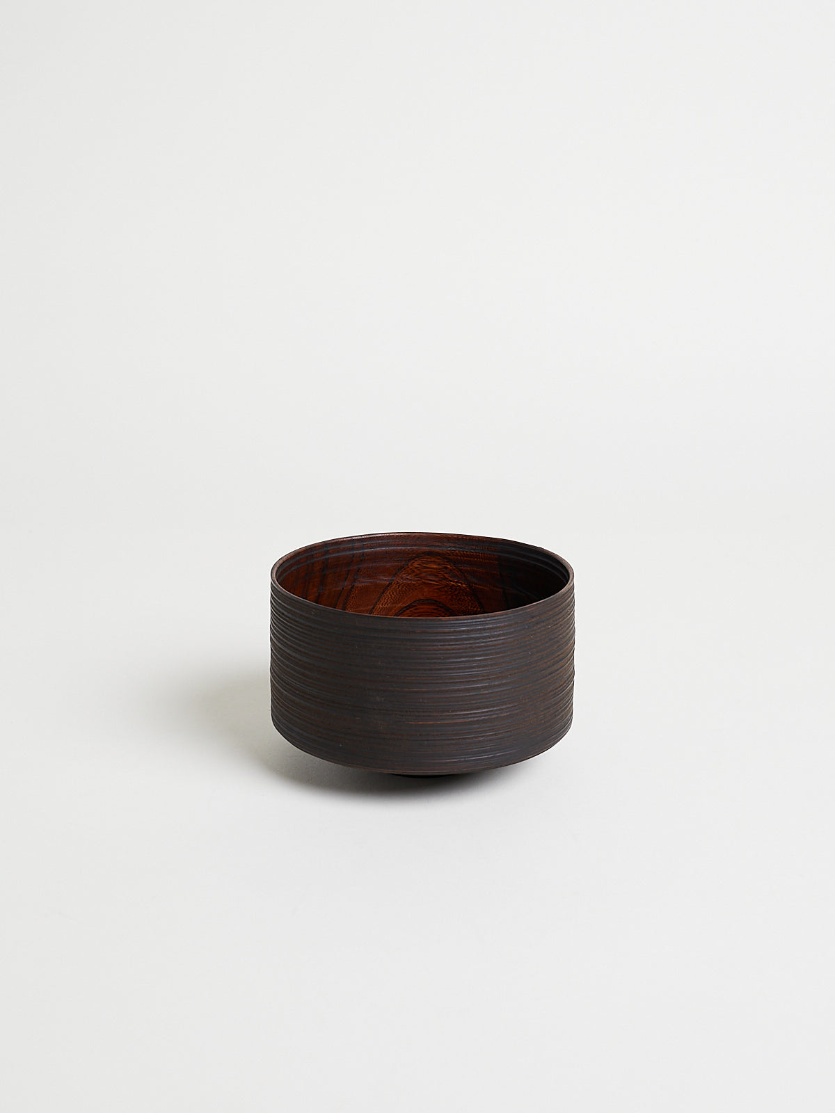 Hand-carved small footed bowl made from locally sourced zelkova wood. This piece has been lacquered using a traditional eco-friendly heat curing technique, ottchil, that's been used for thousand of years. This technique applies approximately 30 coats of naturally heated lacquer, derived from the sap of rhus trees, and hardens it.