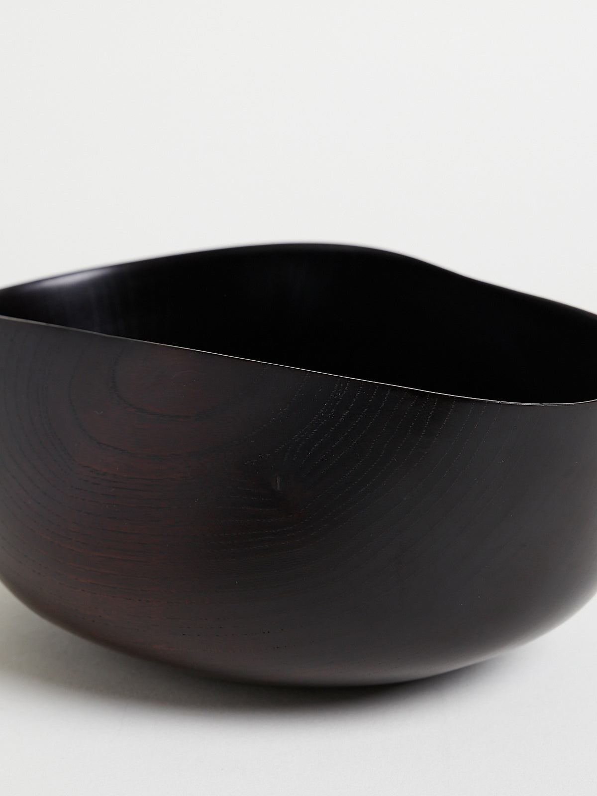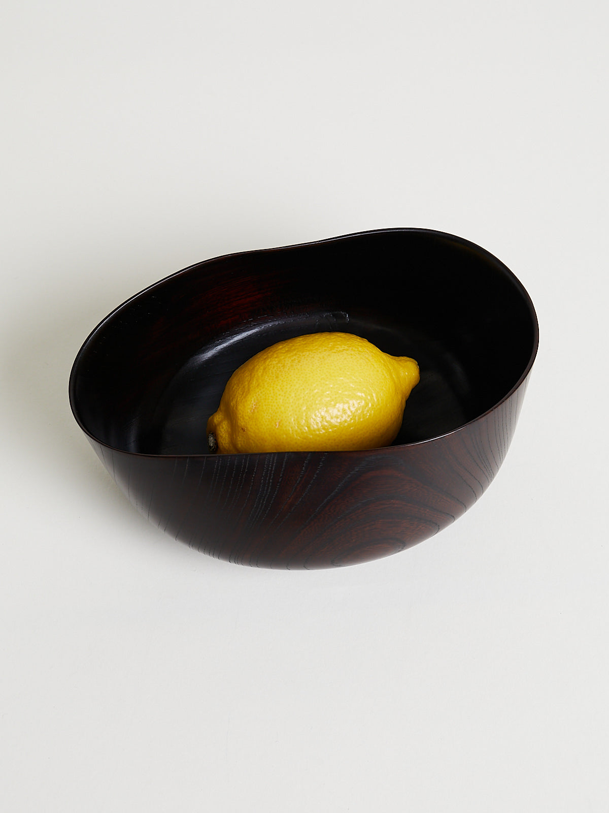 Hand-carved bowl made from locally sourced zelkova wood. This piece has been lacquered using a traditional eco-friendly heat curing technique, ottchil, that's been used for thousand of years. This technique applies approximately 30 coats of naturally heated lacquer, derived from the sap of rhus trees, and hardens it.