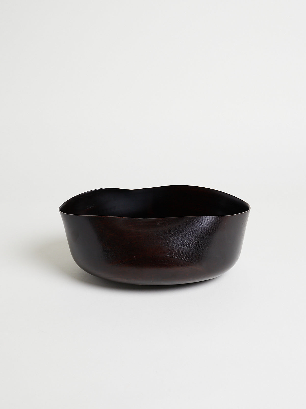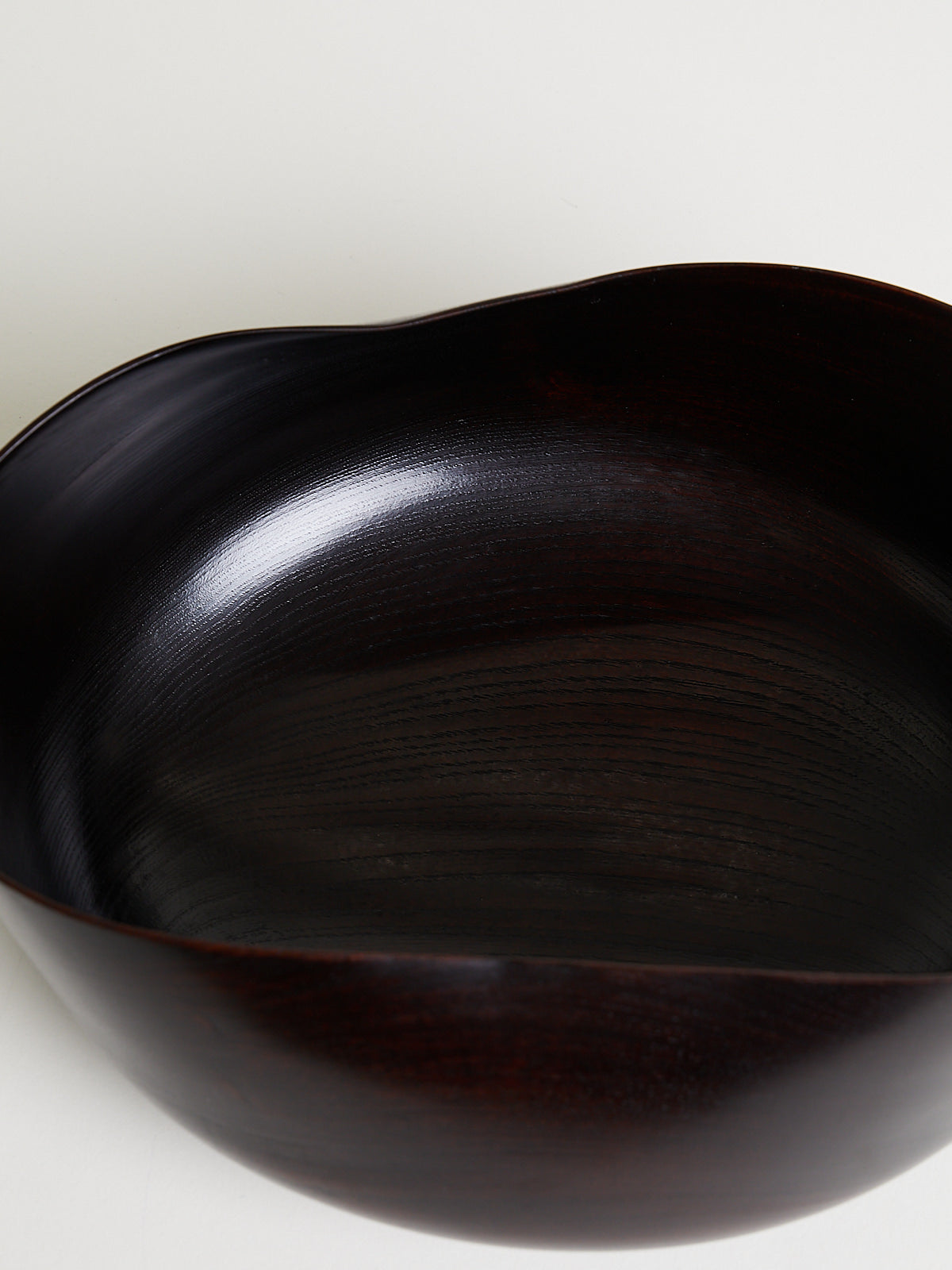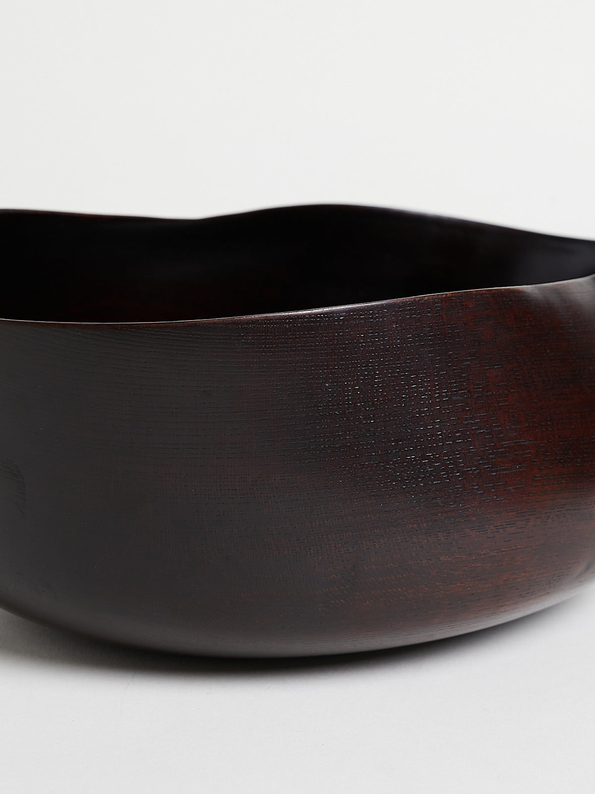 Hand-carved bowl made from locally sourced zelkova wood. This piece has been lacquered using a traditional eco-friendly heat curing technique, ottchil, that's been used for thousand of years. This technique applies approximately 30 coats of naturally heated lacquer, derived from the sap of rhus trees, and hardens it.