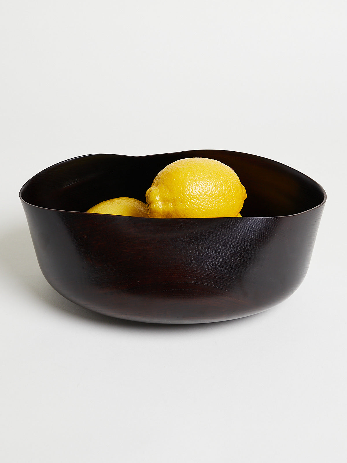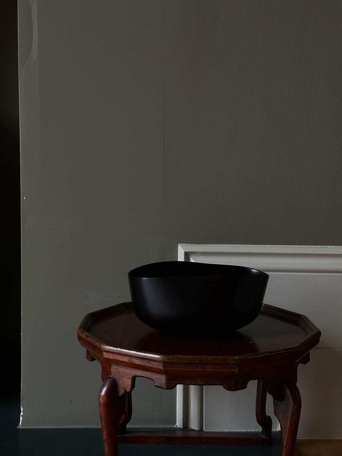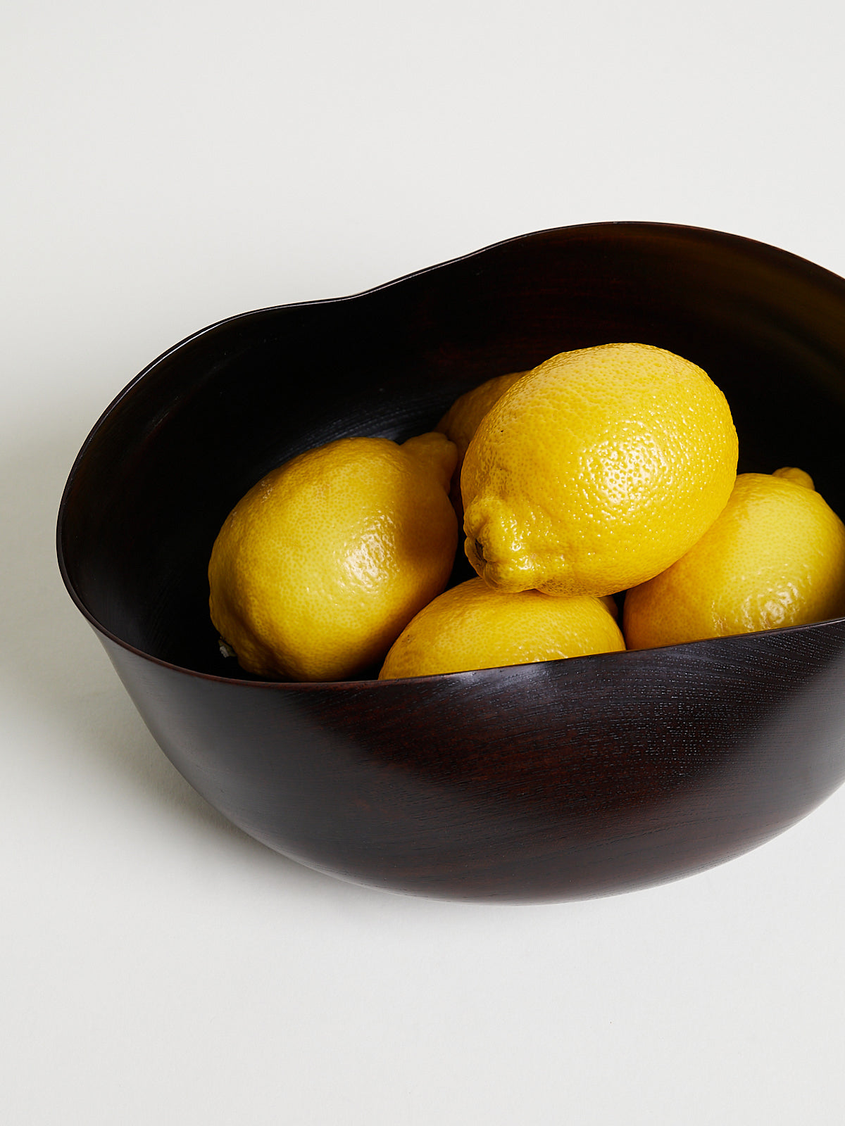 Hand-carved bowl made from locally sourced zelkova wood. This piece has been lacquered using a traditional eco-friendly heat curing technique, ottchil, that's been used for thousand of years. This technique applies approximately 30 coats of naturally heated lacquer, derived from the sap of rhus trees, and hardens it.