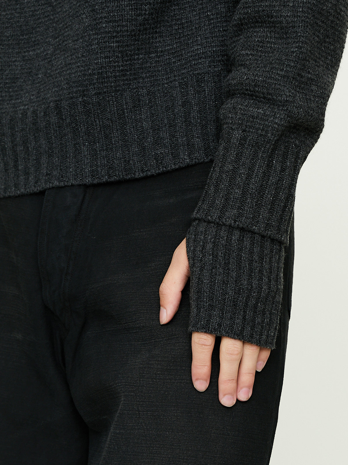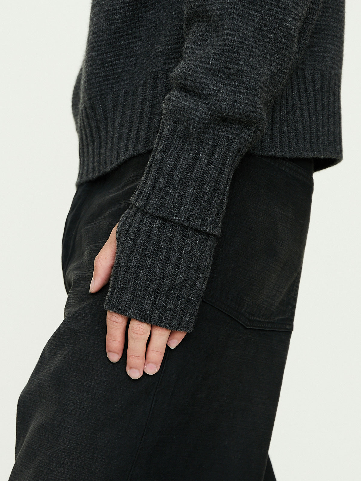 Rib-knit hand warmers in charcoal grey that uses a blend of rare white cashmere and extra-fine lambswool yarns.