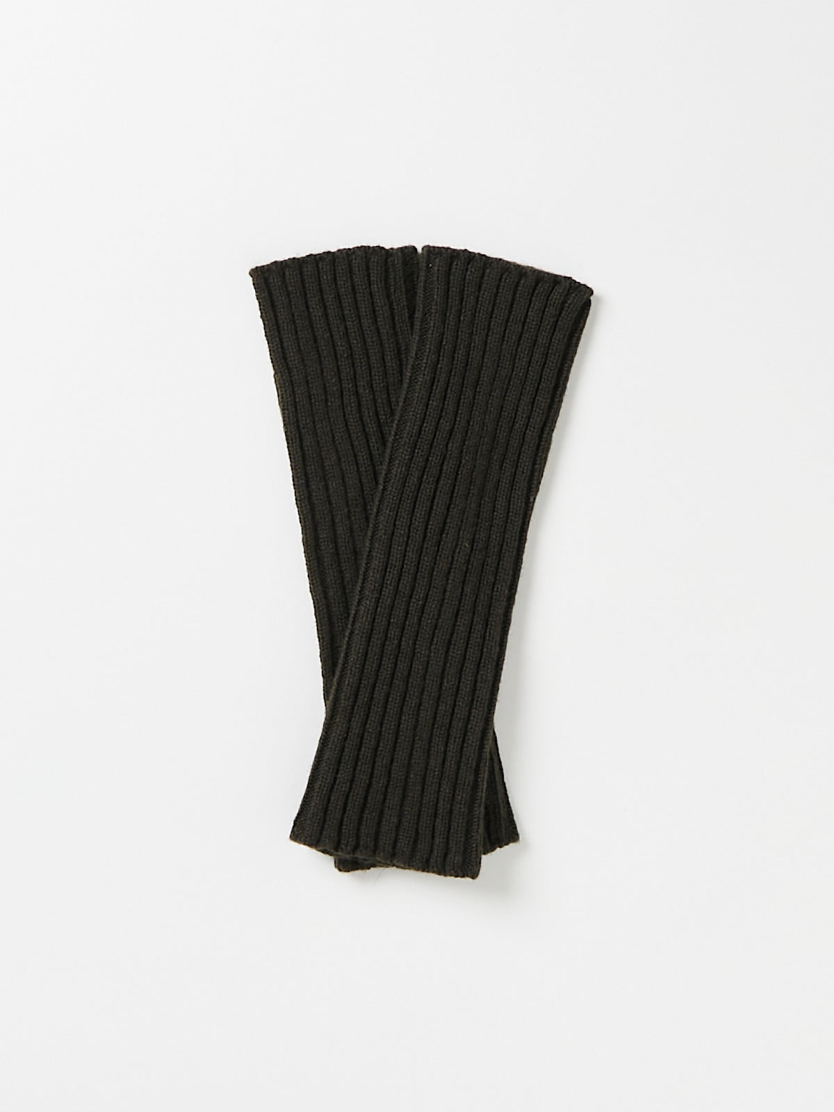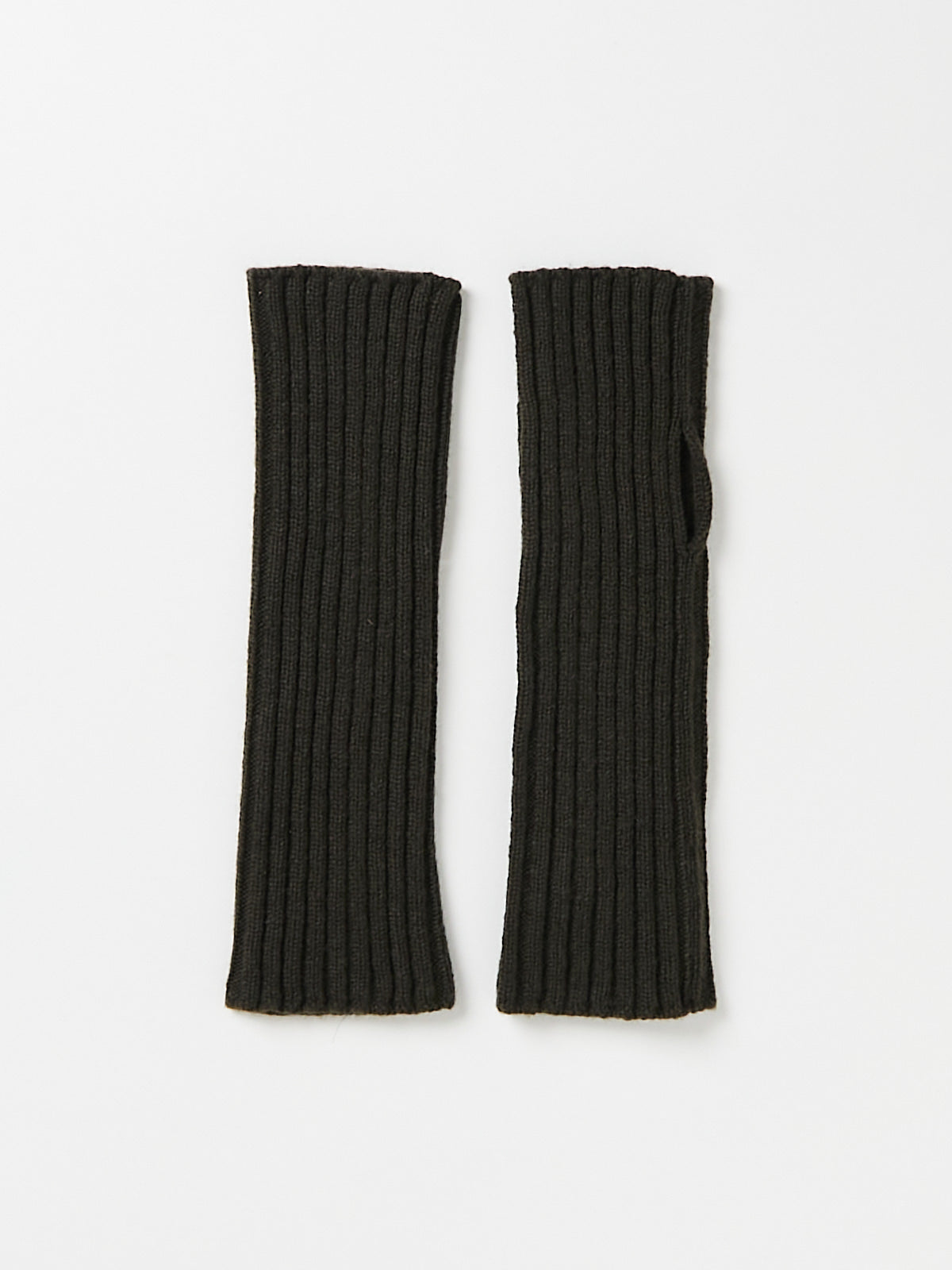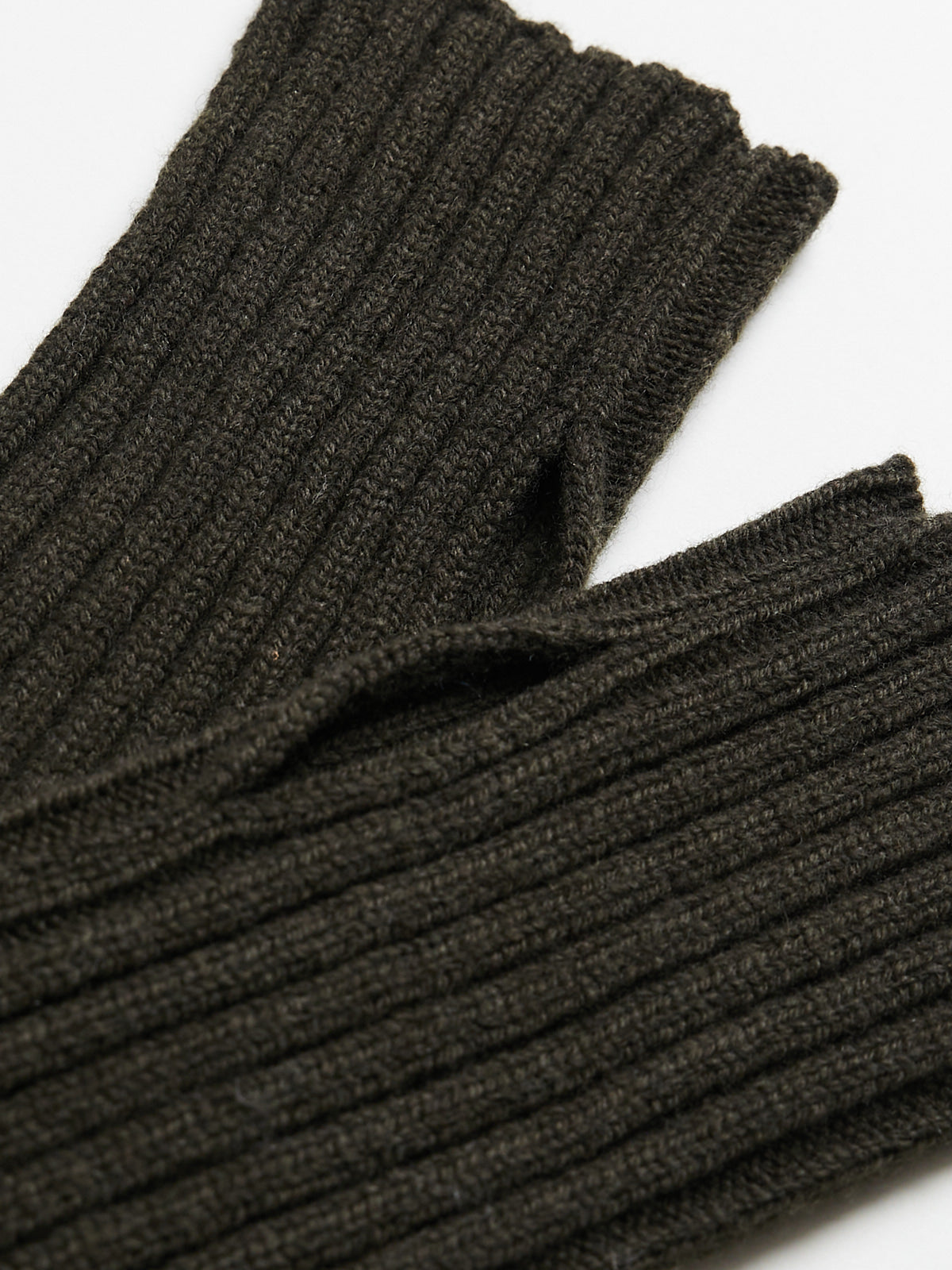 Rib-knit hand warmers in khaki that uses a blend of rare white cashmere and extra-fine lambswool yarns.