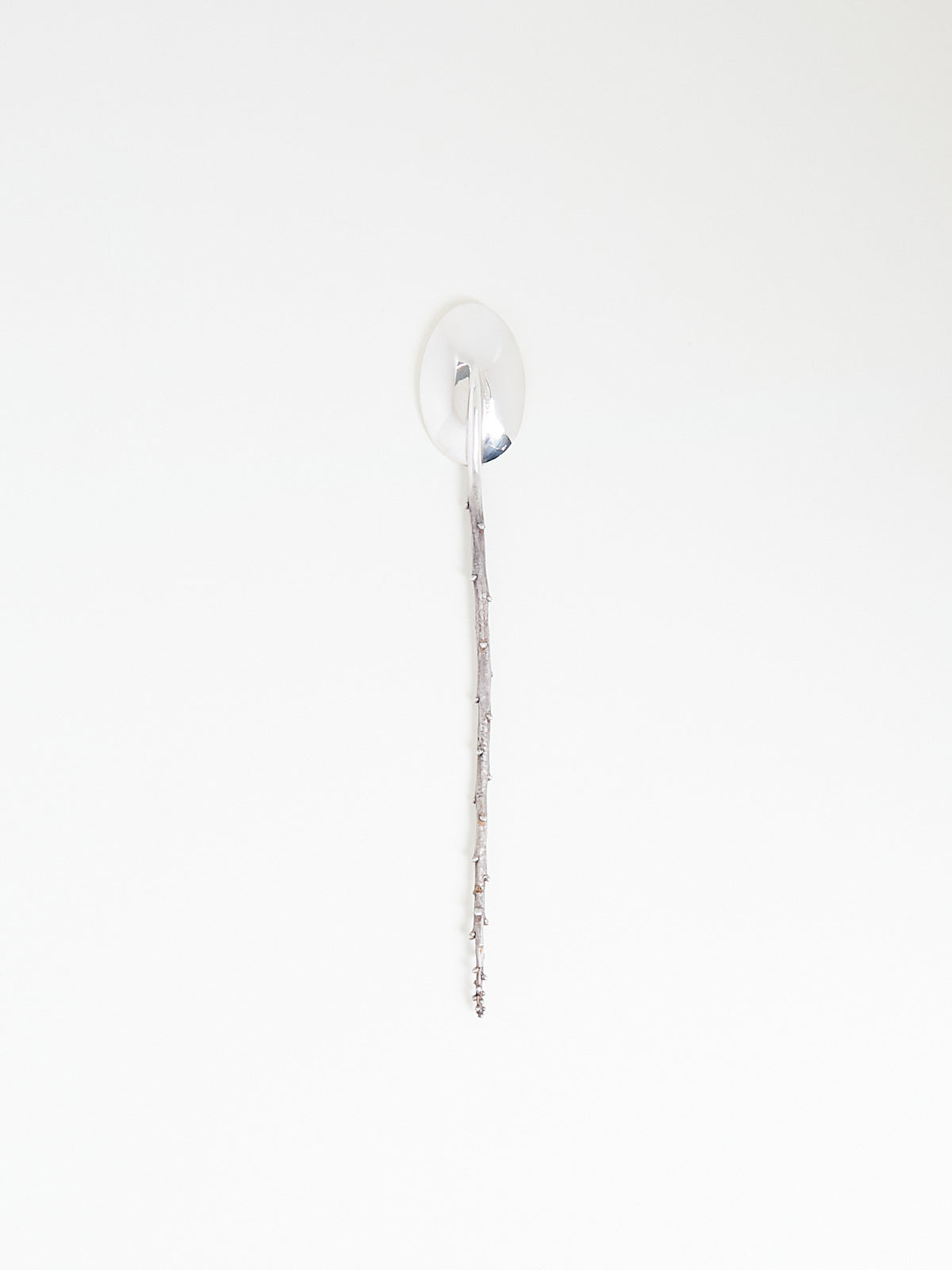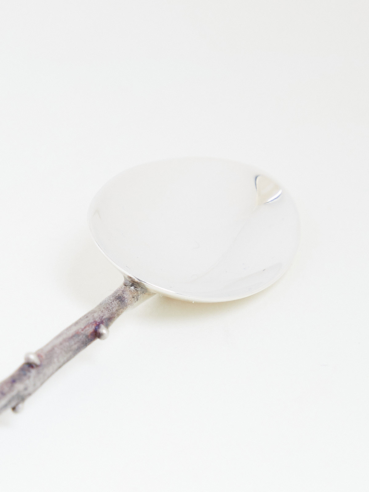 Spoon made from sterling silver with an oxidised bayberry branch handle.