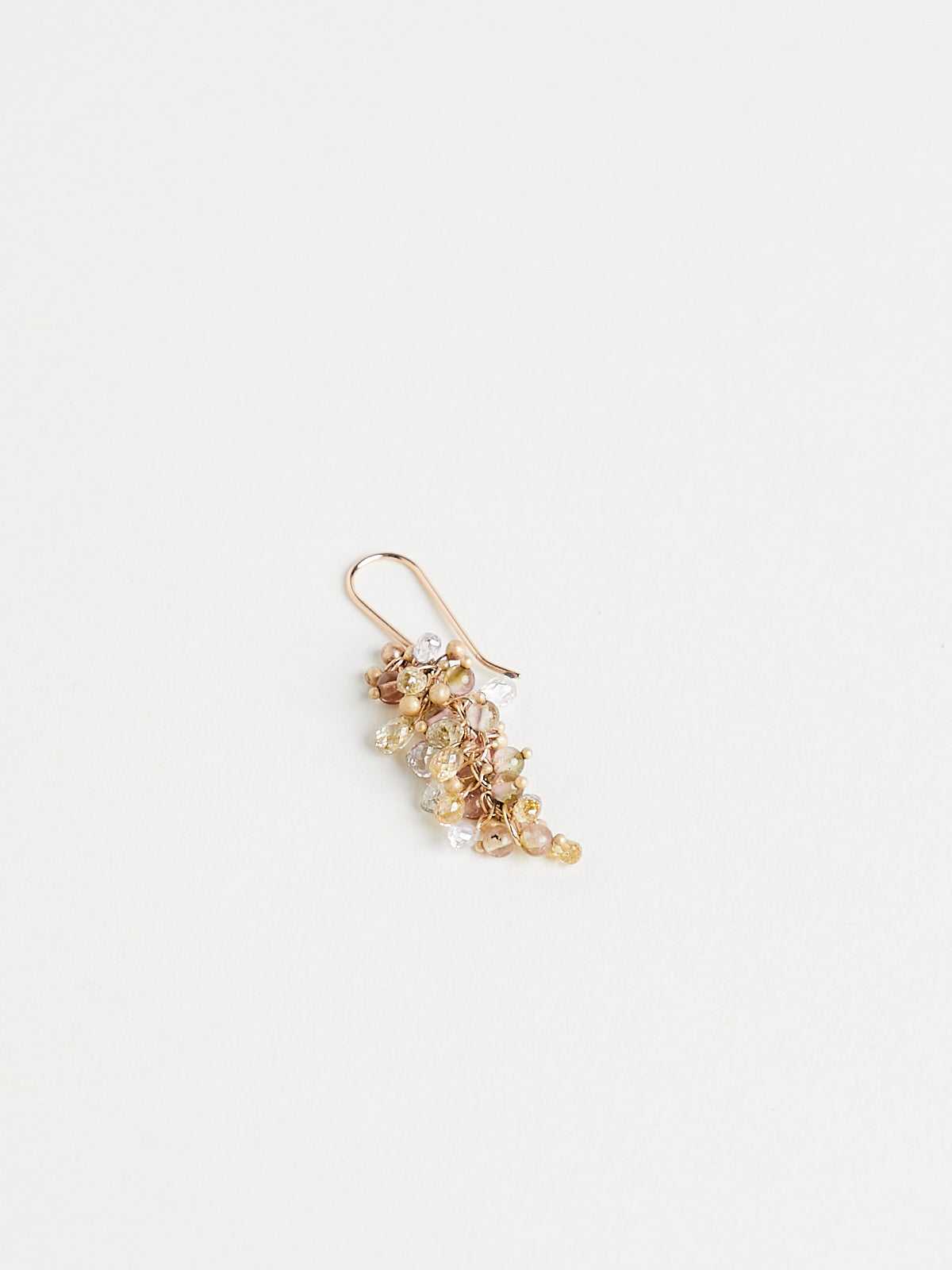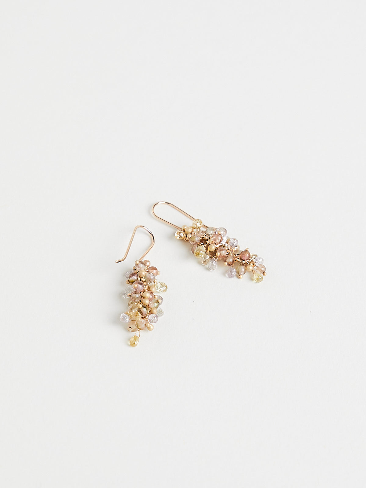 Pussywillow earrings in 14k yellow gold with a cluster of diamond and tourmaline beads. Features an ear wire backing.