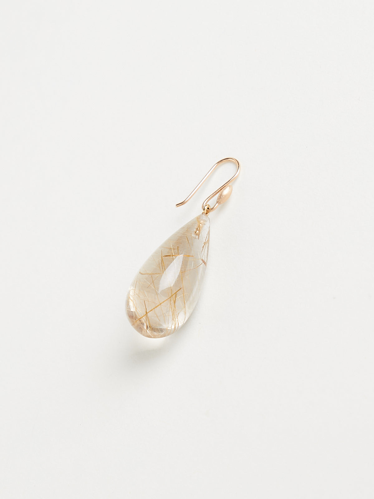 Earrings in 14k yellow gold with hand-cut rutilated quartz drops. Feature an ear wire backing.