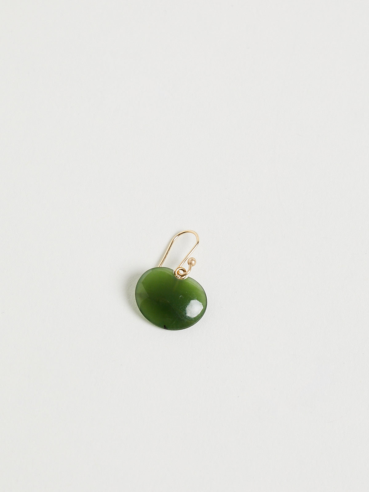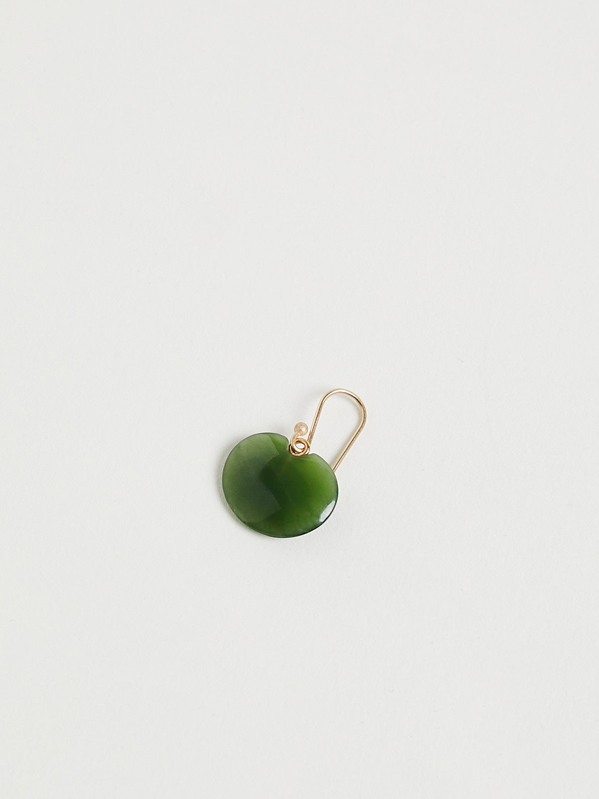 Lily pad earrings in jade on 14k solid yellow gold ear wires.