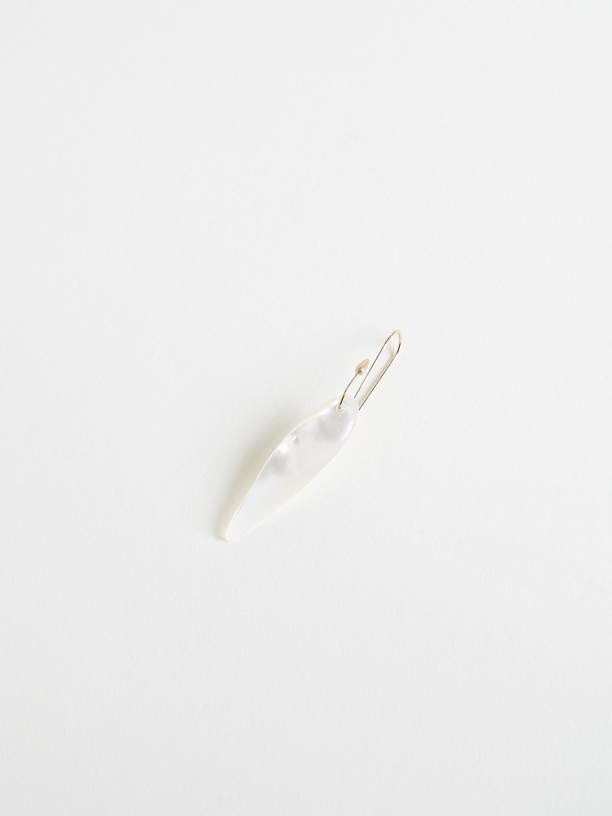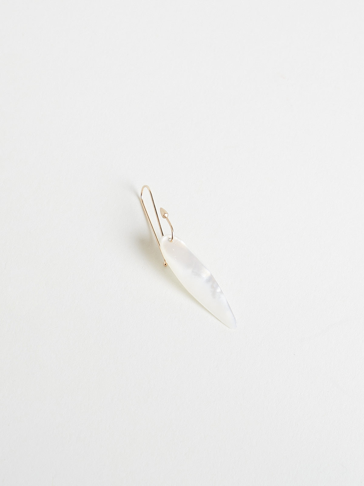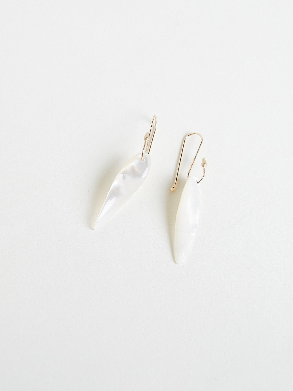 Small fish earrings in 14k yellow gold with white mother of pearl. Features an ear wire backing.