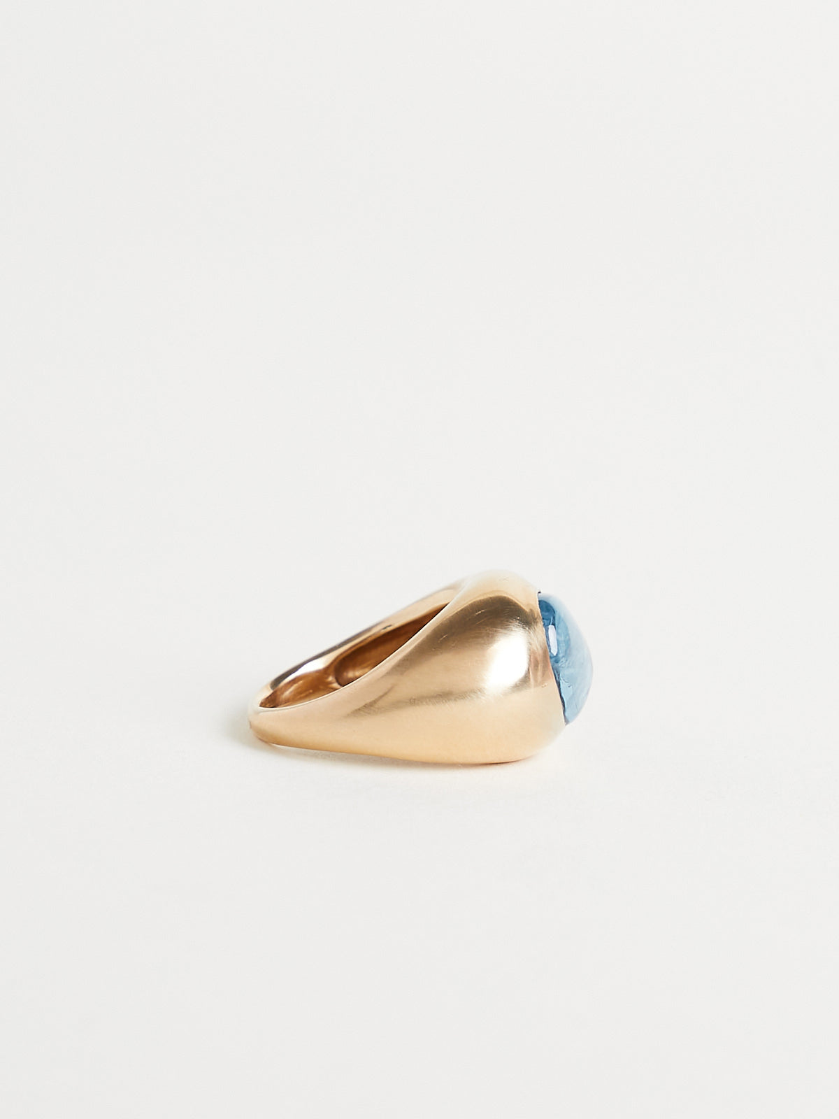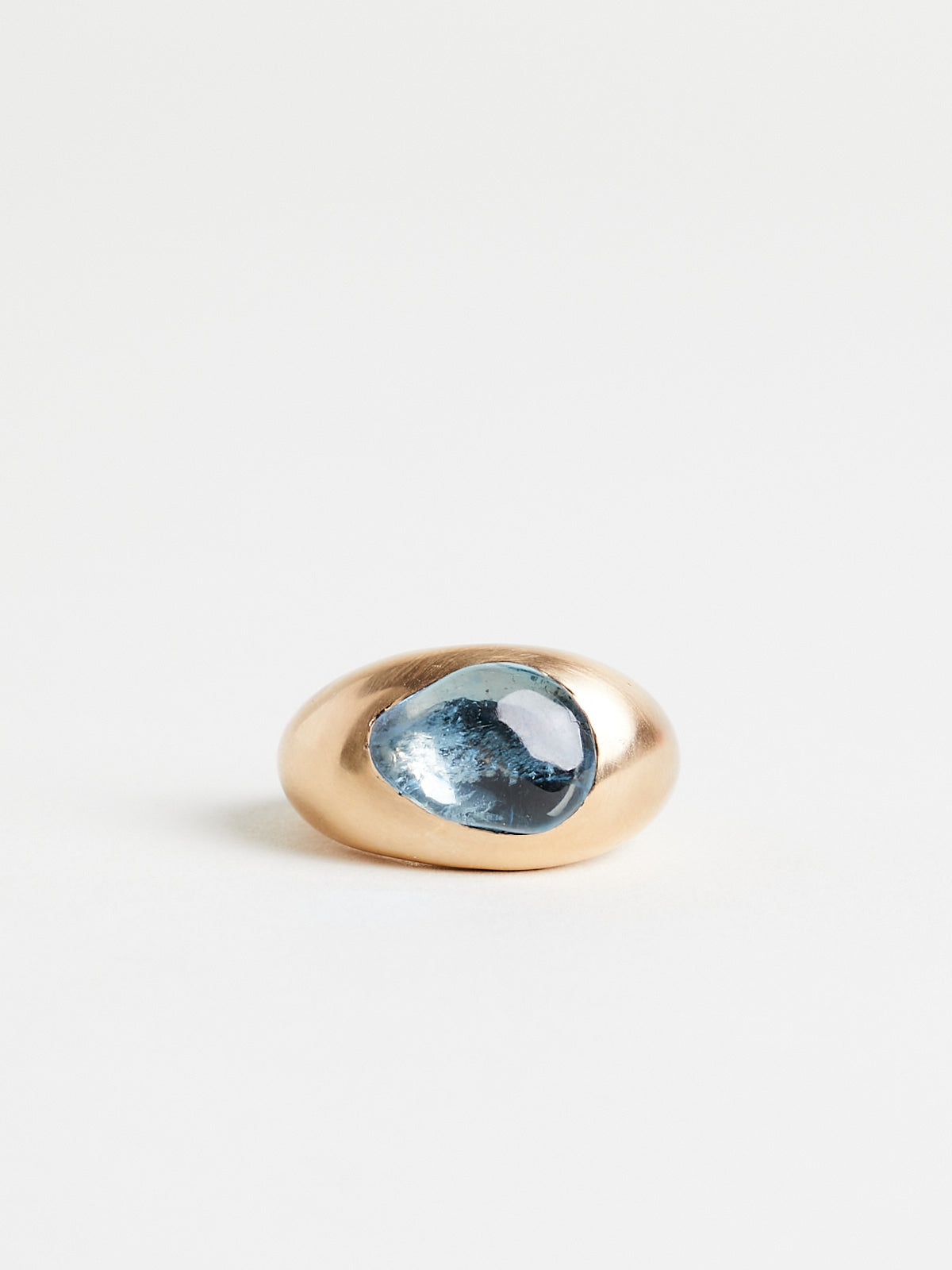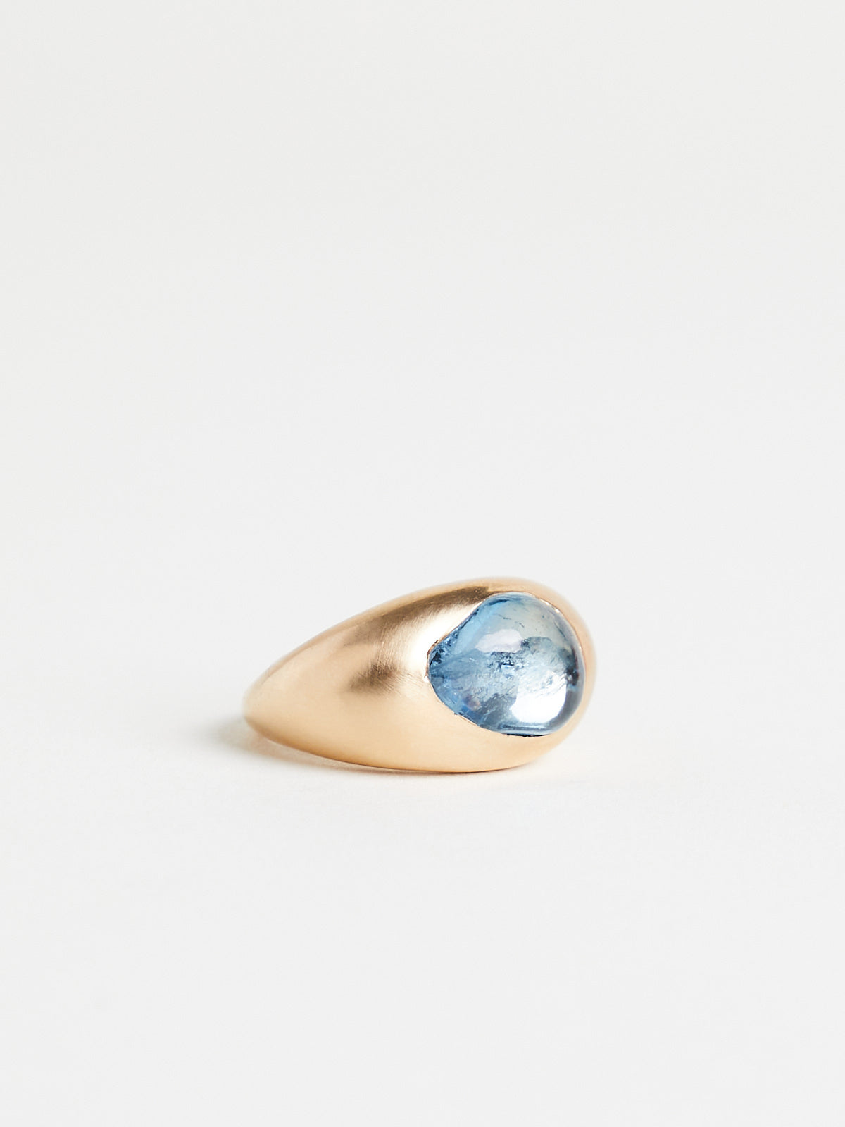 Handmade ring in 18k yellow gold with an aquamarine set in a domed cigar band.