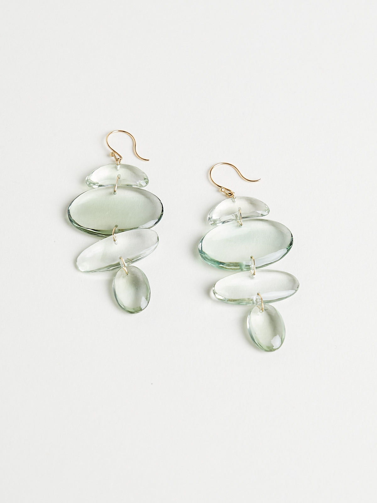 Green Amethyst Oval Totem Earrings on 18k Yellow Gold