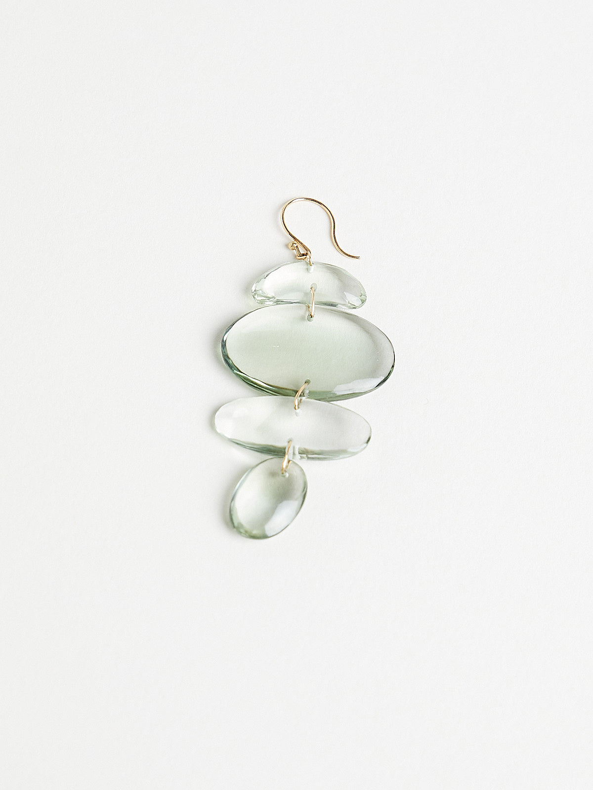 Oval totem earrings in 18k yellow gold with hand-cut green amethyst. Features an ear wire backing.