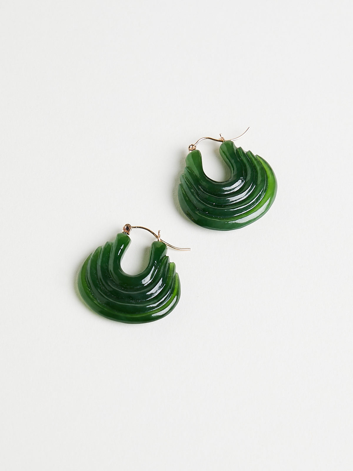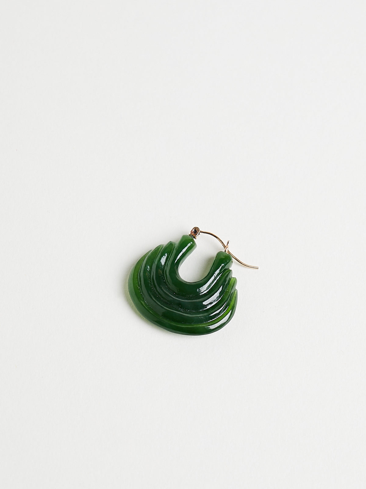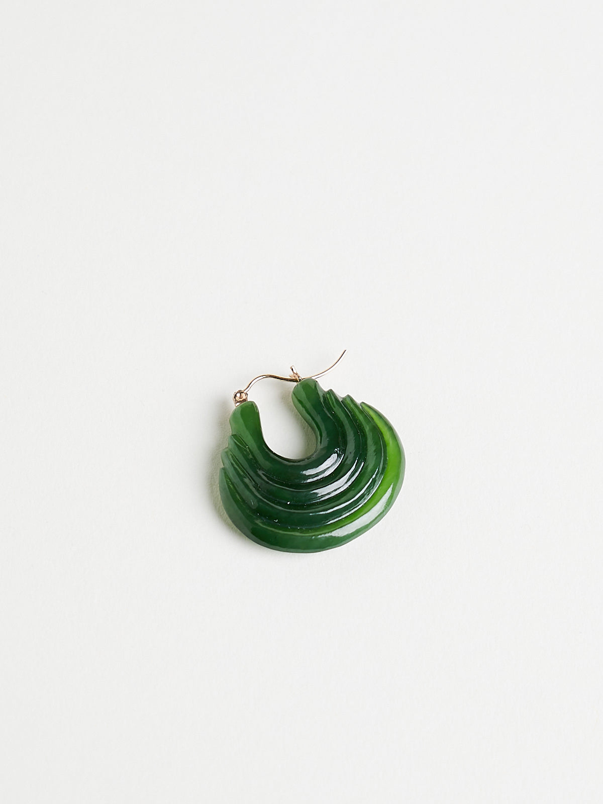 Handmade gong ear hoops made from hand-carved jade. Features a hinged backing in 18k yellow gold.