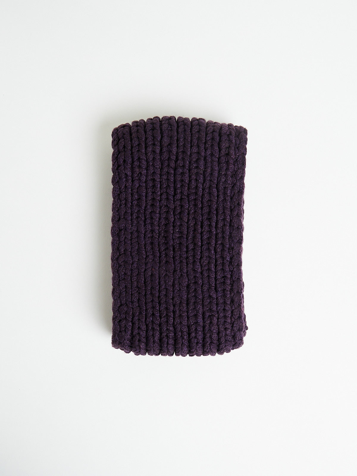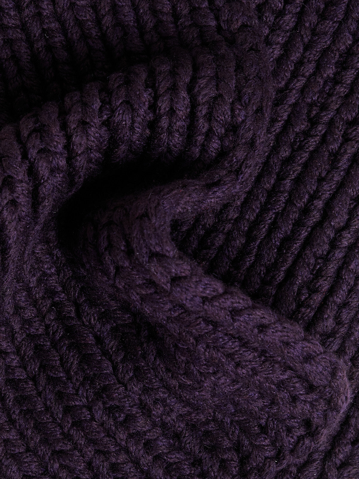 Handknitted chunky and ribbed scarf made from a soft dark purple cashmere.