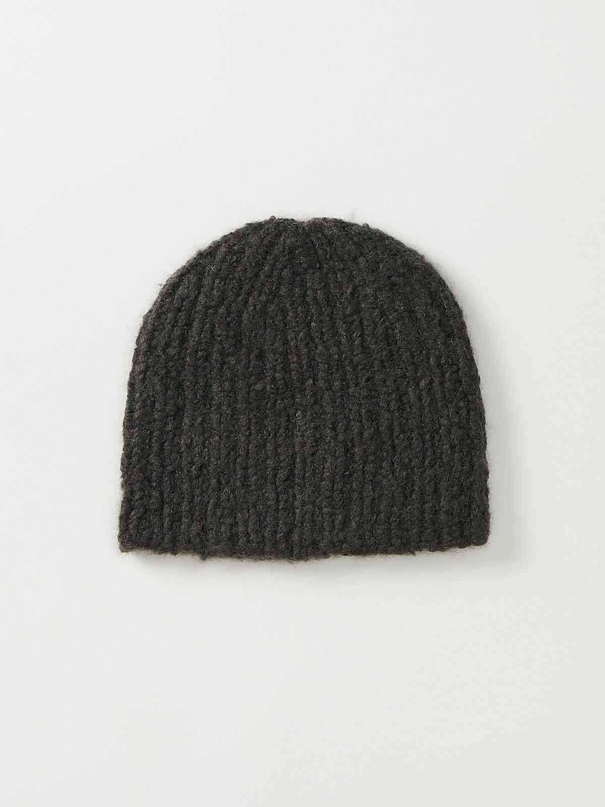 Handknitted chunky ribbed beanie in dark green two-toned cashmere/silk.