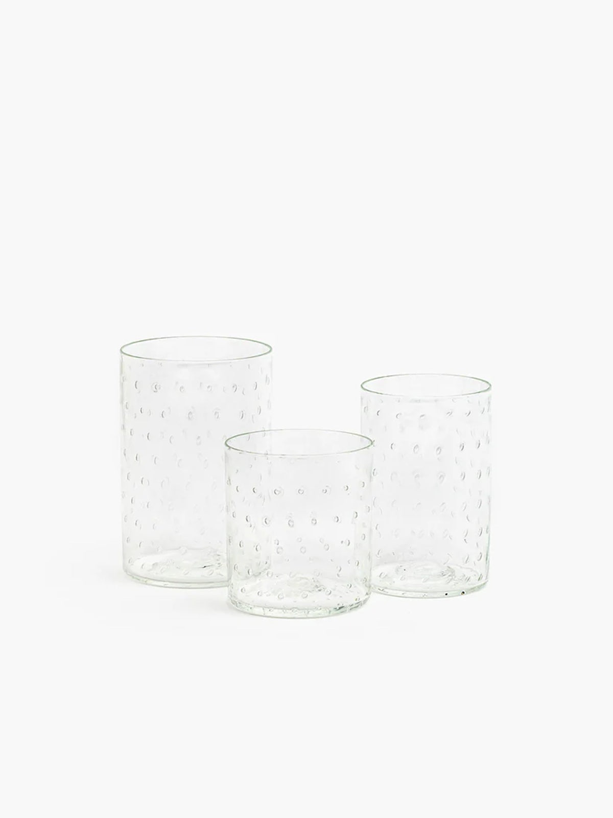 Its minimalist, clean design paired with the delicate but striking bullicante pattern delivers a glass of refined simplicity. Sold individually.