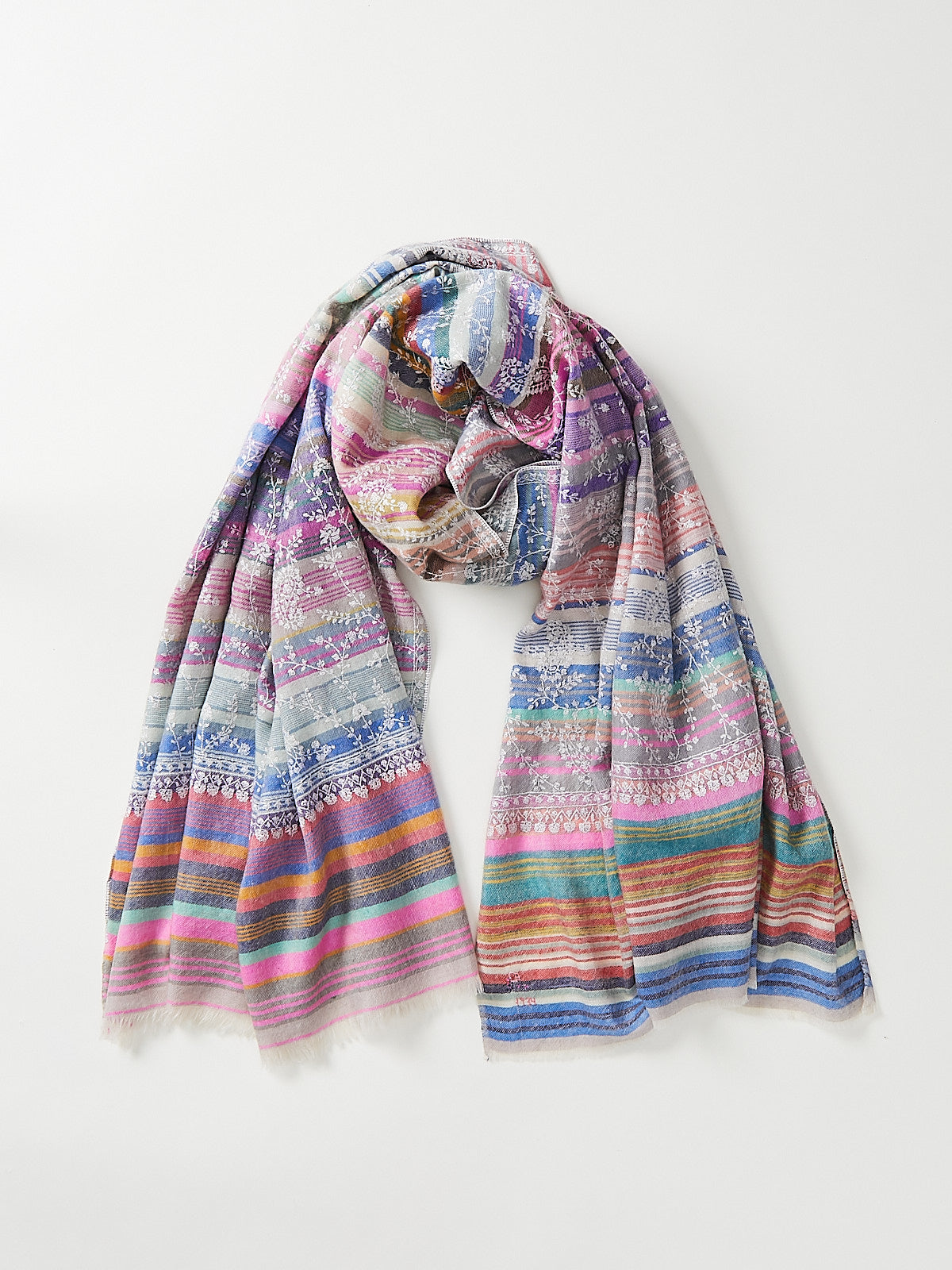 Embroidered Pashmina Shawl in Stripe Multi with Blush Embroideries